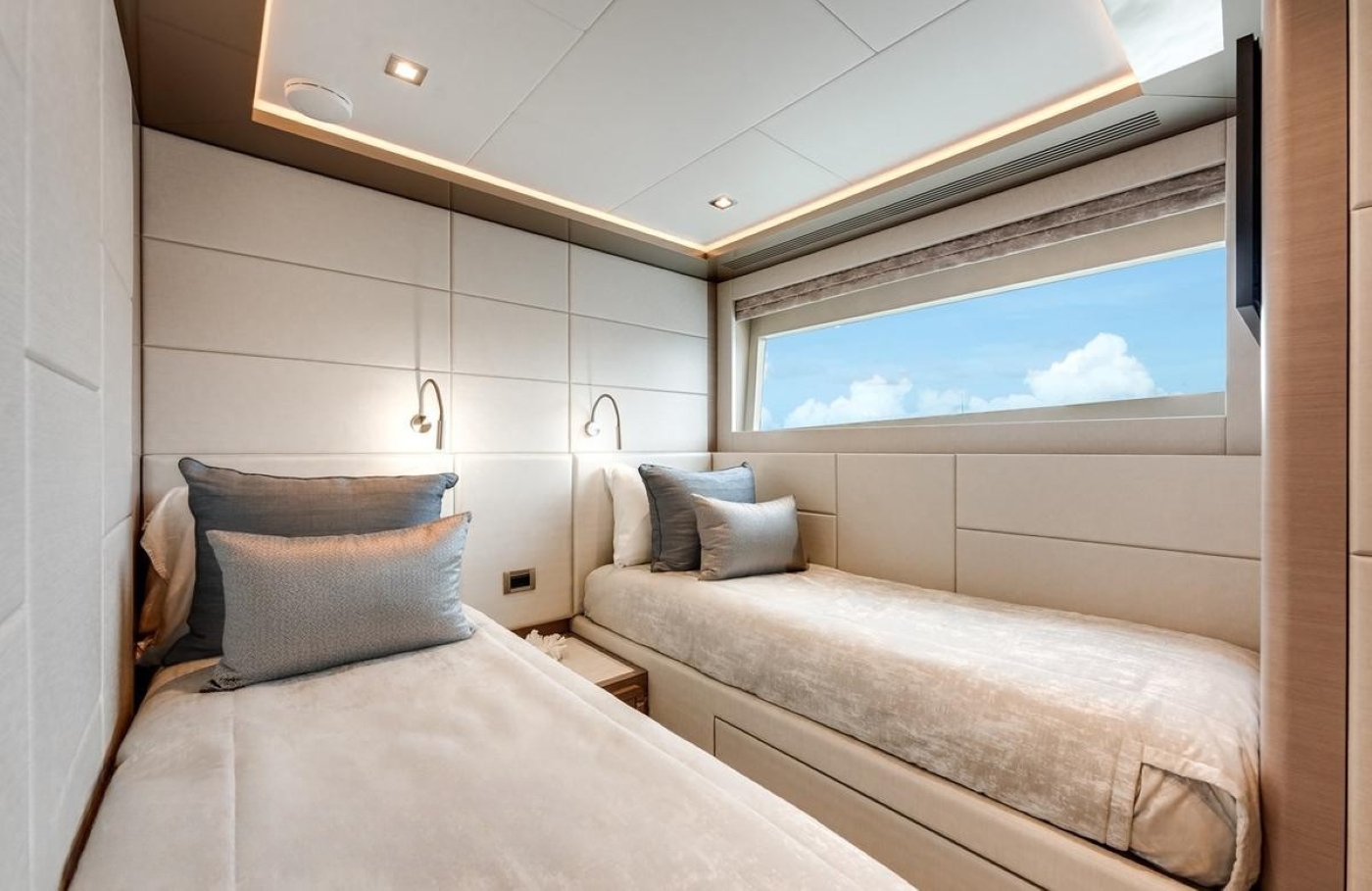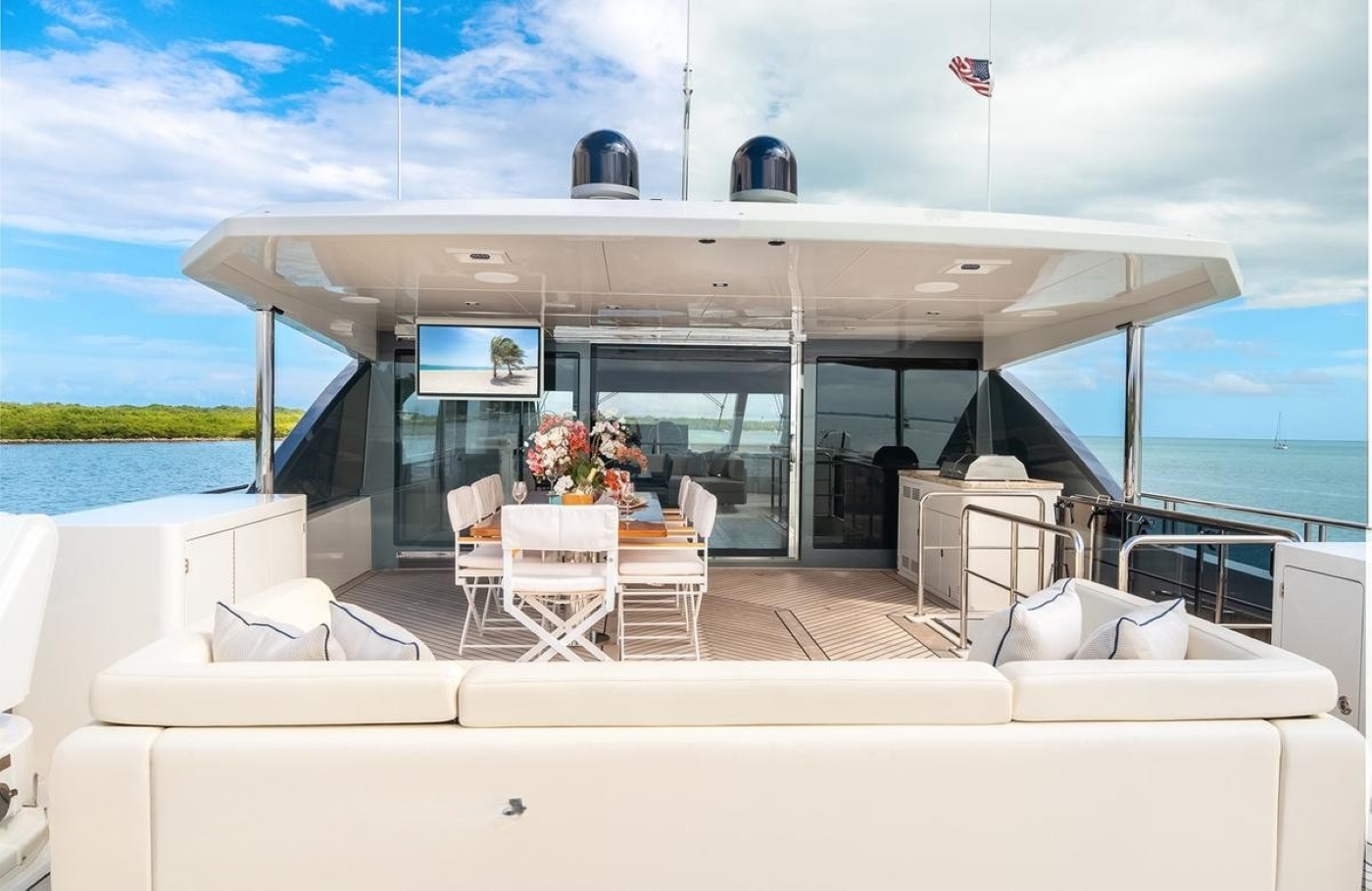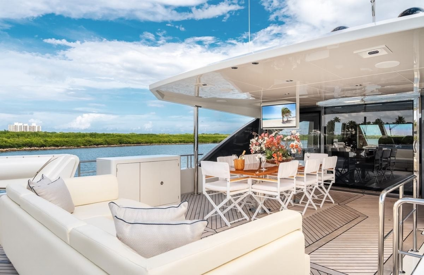 From Ocean Alexander comes 29.65m (97' 3") luxury yacht JUST A VACATION, launched in 2024 with deluxe features and amenities. Spacious al fresco entertainment and relaxation areas are complemented by the generous interiors including a main salon and sky lounge. The accommodation is for up to ten guests in five suites with additional cabins for the five crew members.