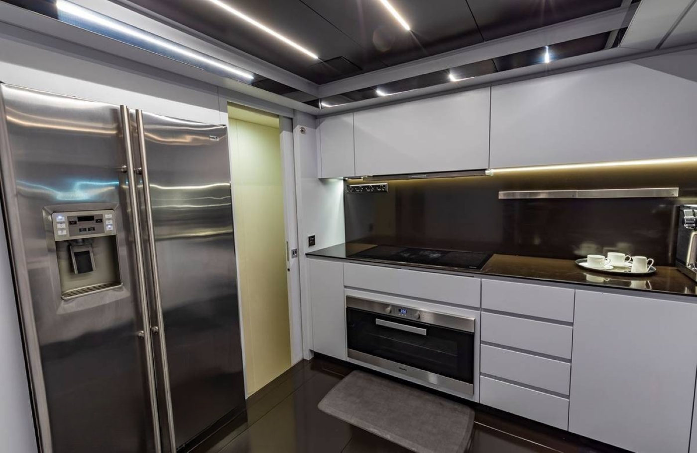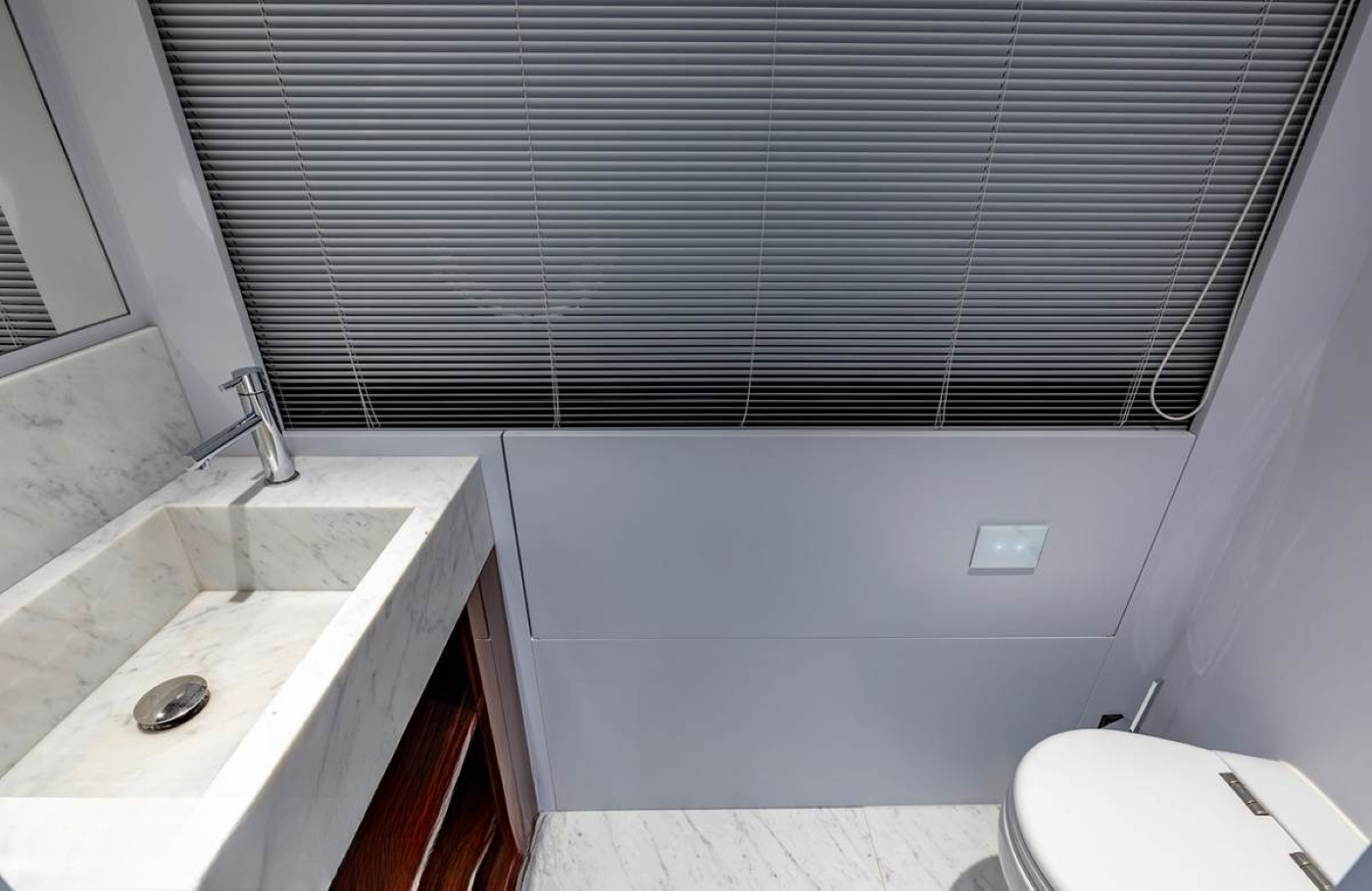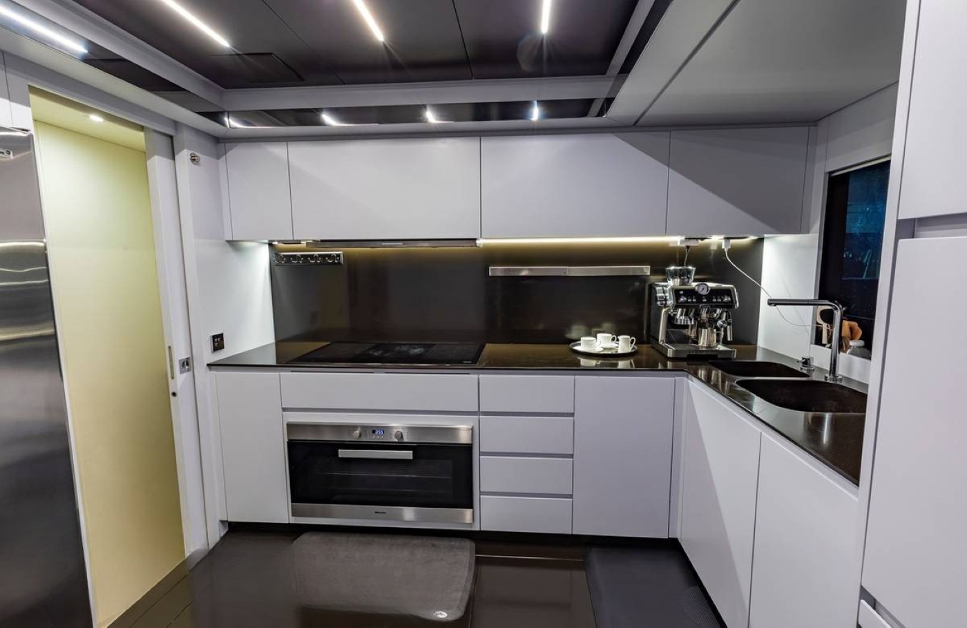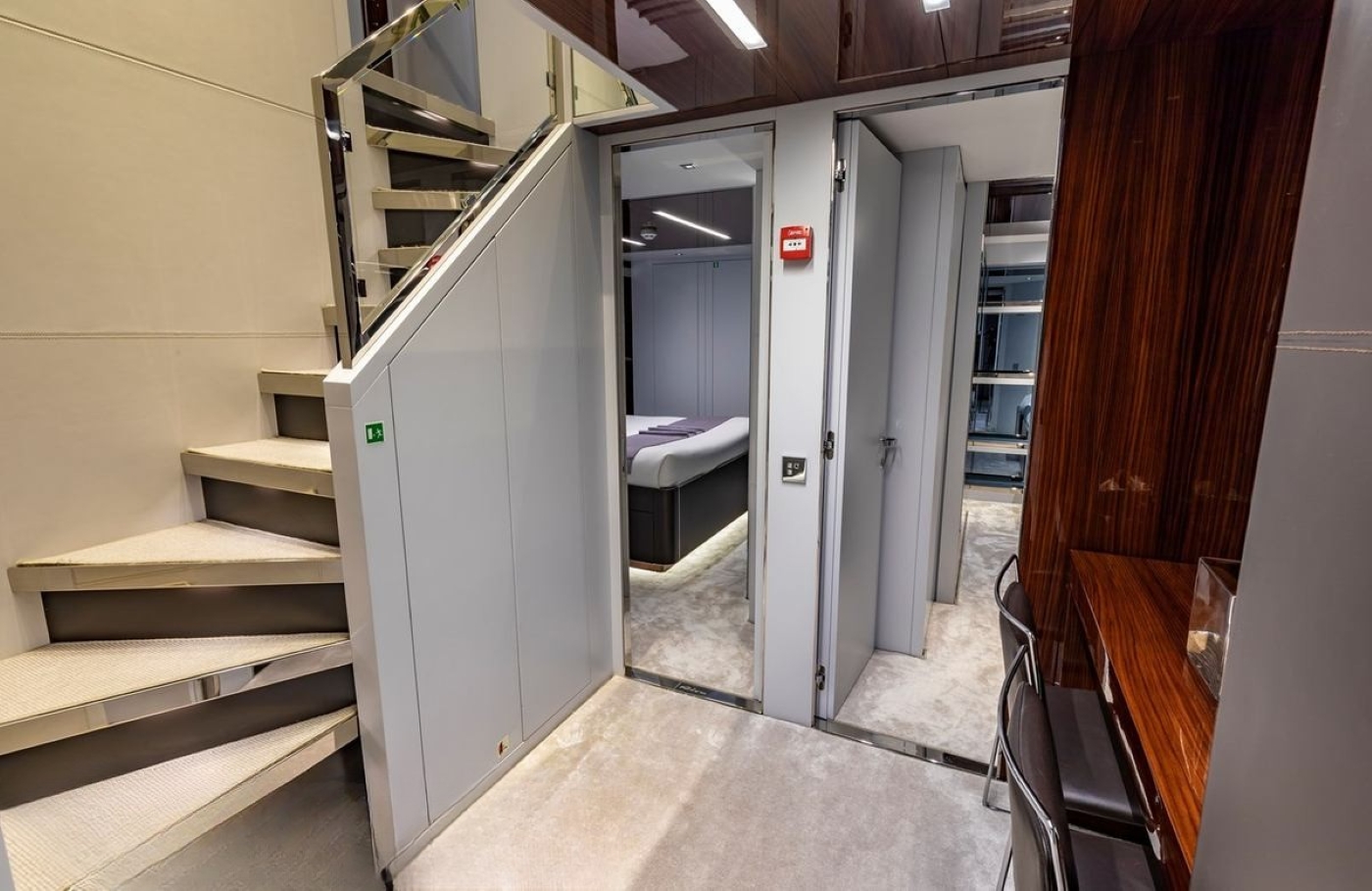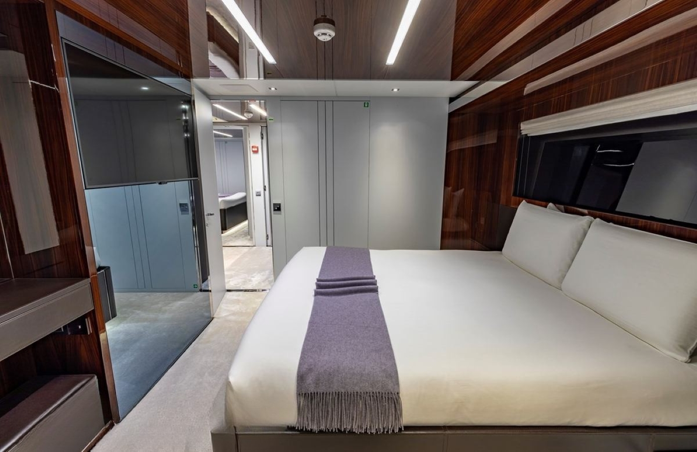 Launched in 2019, NO SURRENDER is in impeccable condition and offers spacious accommodation for eight guests. The arrangement comprises a master suite, a VIP double and two guest cabins that can be configured as double or twin berths. All of the accommodation is en suite, with plenty of wardrobe space and large windows in the port or starboard side.