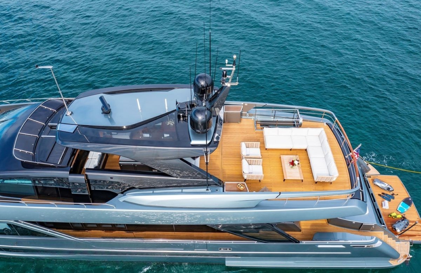 Motor yacht NO SURRENDER ( ex BEYOND BEYOND, Hanna, Tasty Waves, Just Perfect) measures 33.53m (110') and was built by the iconic Italian shipyard RIVA in 2019, with design by Officina Italiana Design, offering bespoke interiors and great deck areas for up to 6-8 guests. There are four deluxe cabins, all with ensuite bathroom facilities, as well as further accommodation for a crew of 5.