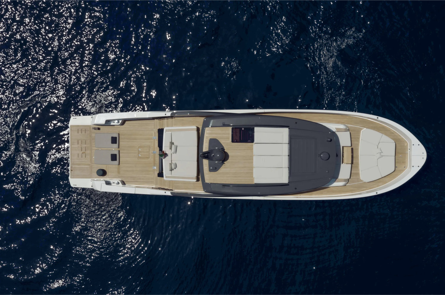 Inside, KIMANI reflects refined, minimalist Italian design. Zuccon International Project has used expansive windows to infuse natural light into the main saloon, creating a social hub that flows effortlessly onto the aft deck. Comfort is elevated through chic furnishings and an elegant styling palette in tones of pale neutrals and soft textures. At night, ambient lighting softly transitions the atmosphere to an intimate lounge retreat. Smart TVs in every cabin and the salon bring modern entertainment into harmony with the yacht’s airy aesthetic.