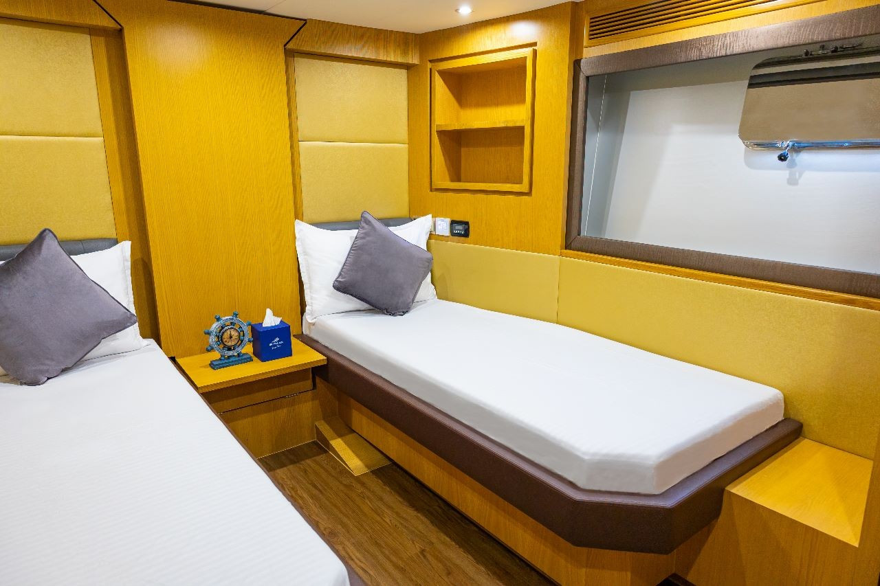 The open plan main salon offers plenty of seating areas, access onto the aft deck and wonderful views from the elegant windows. There is also a dedicated karaoke suite for guests entertainment.