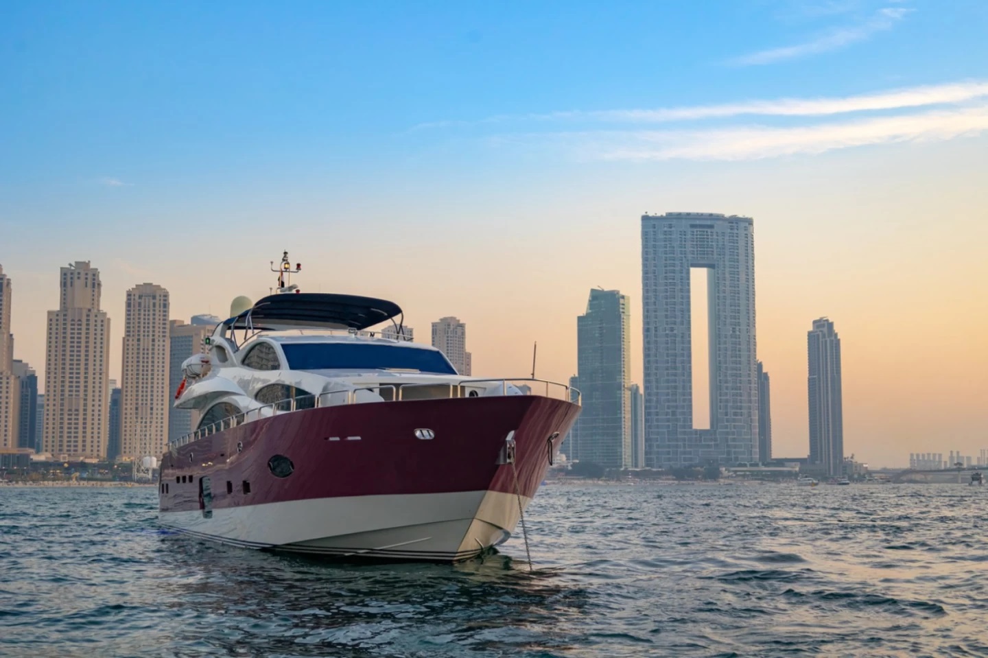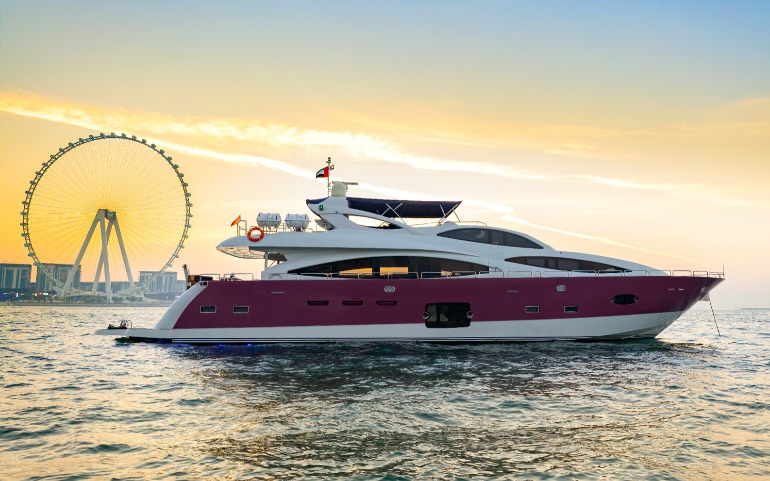 Built in 2022, this eye-catching 31.00m (101' 8") flybridge motor yacht offers an exceptional charter experience for up to eight guests. Her unique purple hull, spacious exterior decks and open plan interior include highlights like a deck jacuzzi and a private karaoke room. There are four suites to accommodate overnight guests who will be looked after by four crew members.