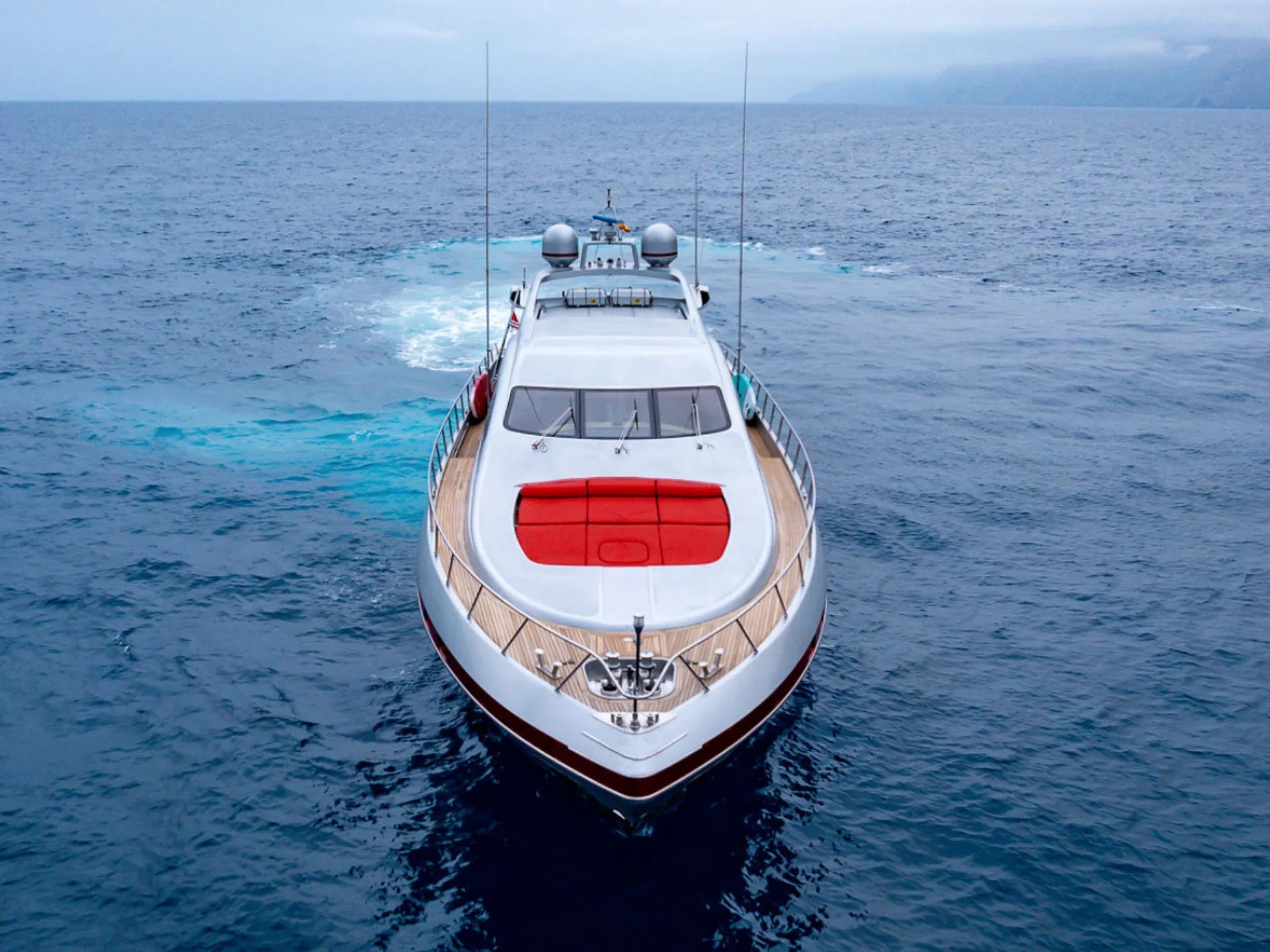 Motor yacht LA DIGUE is a 28.30 m (92' 10") Mangusta (Overmarine) open yacht built in 2007 and refitted in 2018 and 2023. She presents with a distinctive silver hull with ruby red stripe and highlights – a colour scheme which continues throughout the yacht. She can accommodate up to nine guests in four suites with a crew of three.