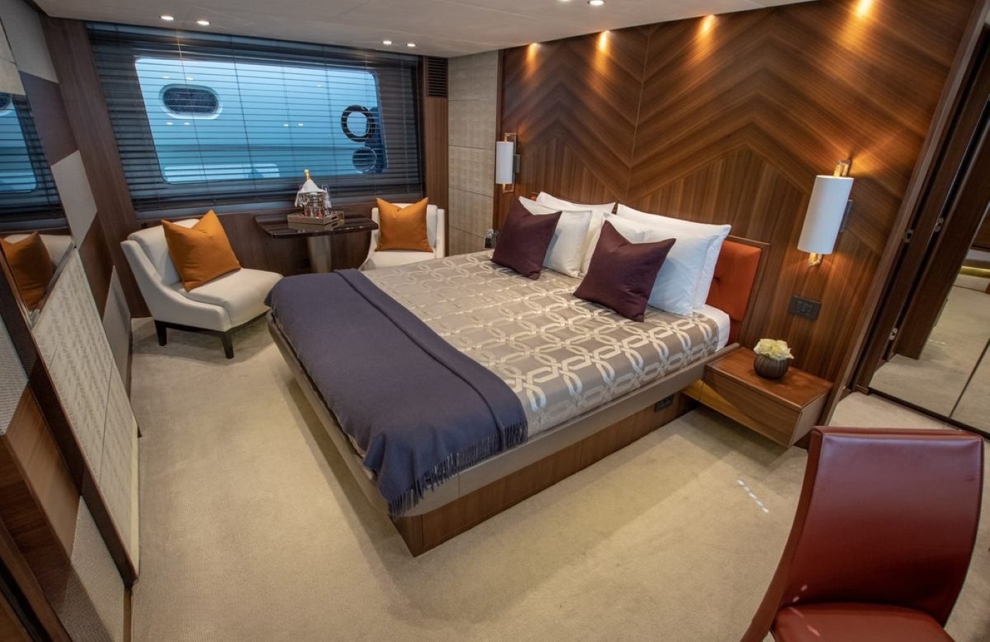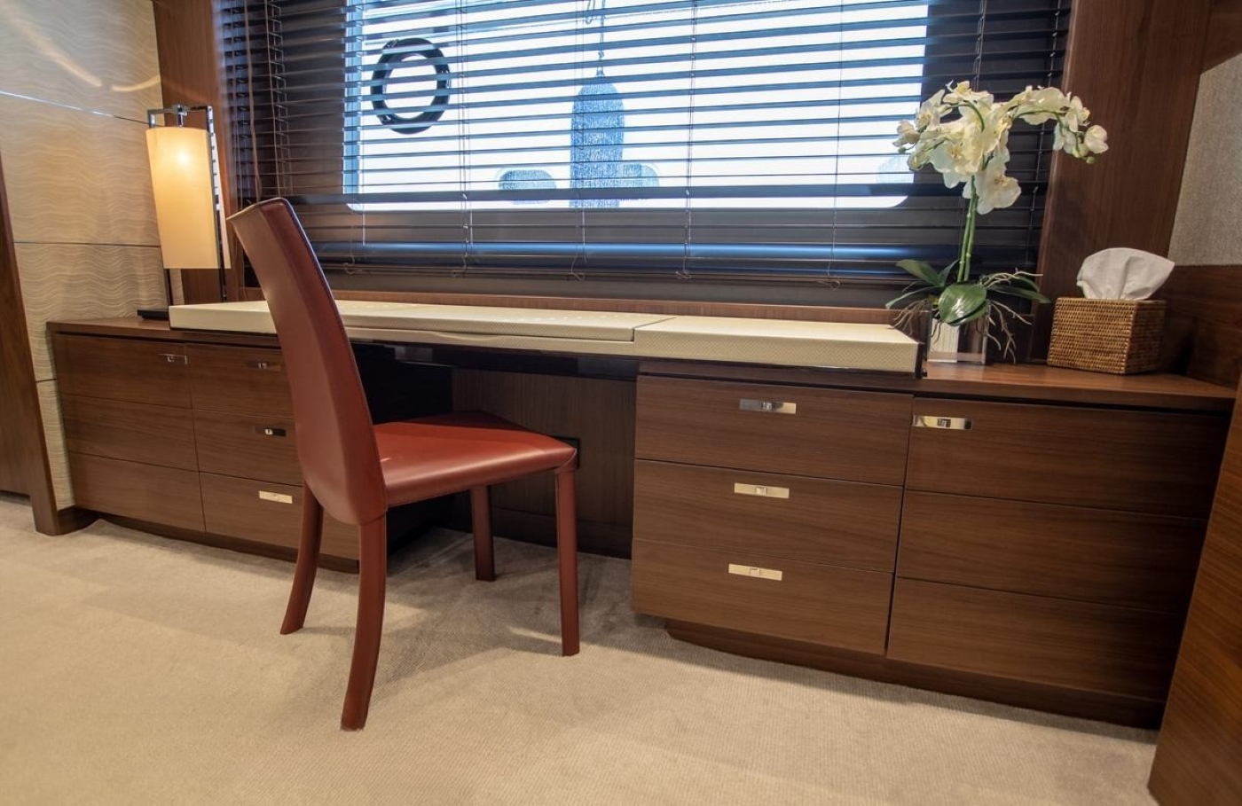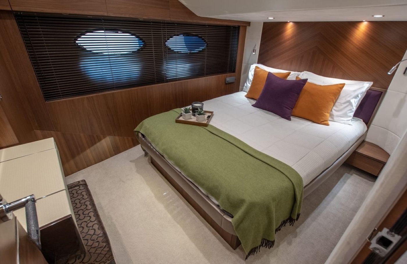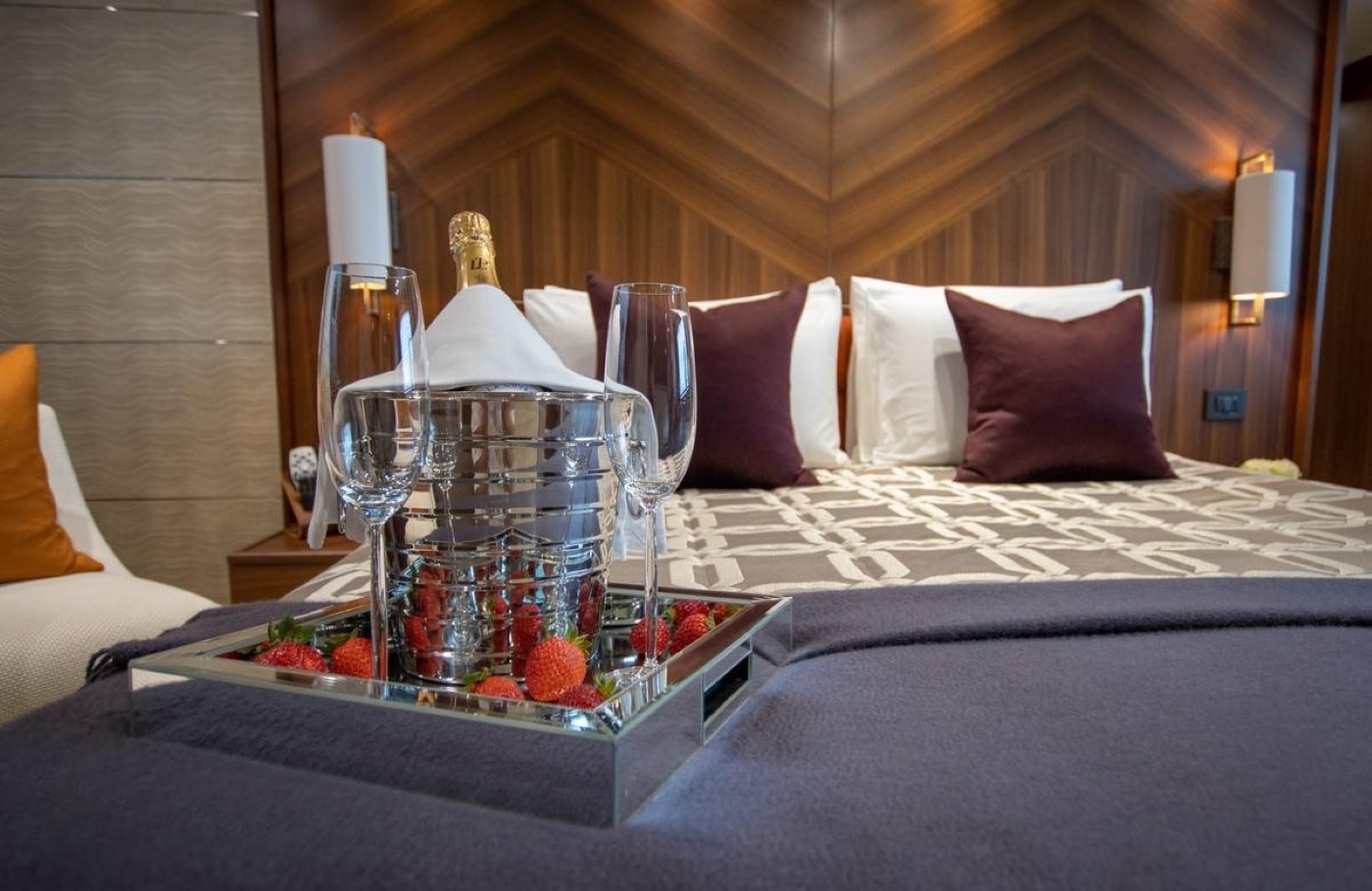 Guests will experience the ultimate in comfort across four cabins (three double and one twin). The full beam master suite features a generous suite with marble-finished ensuite with twin sinks and roomy well-lit bath and shower area. The other cabins meanwhile feature integrated furniture to make excellent use of each individual space and ensuite bathrooms. 1 full beam master stateroom with ensuite 1 forward VIP with ensuite 1 double cabin with enquite 1 twin cabin with ensuite