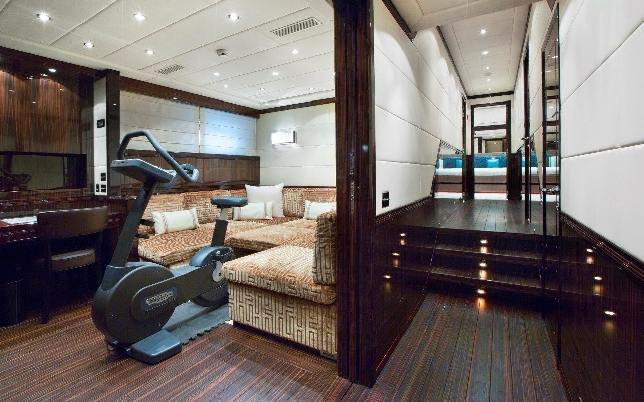 Tenders & Toys: ~ 5m Castoldi Jet Tender for 7 people ~ 2-person Yamaha GP 1300 Waverunner ~ 1 x Yamaha Jetski ~ 2 x Inflatable Canoe ~ 1 x Waterski ~ 1 x Wakeboard ~ 1 x Donut ~ 2 x Standing Paddle Board ~ 1 x JetSurf 2-stroke petrol engine ~ Snorkelling equipment ~ RDV Diving Audio Visual Equipment and Deck Facilities: ~ Kaleidescape and Sky TV in salon Gym equipment: ~ Treadmill, Technogym installed in the lower saloon.