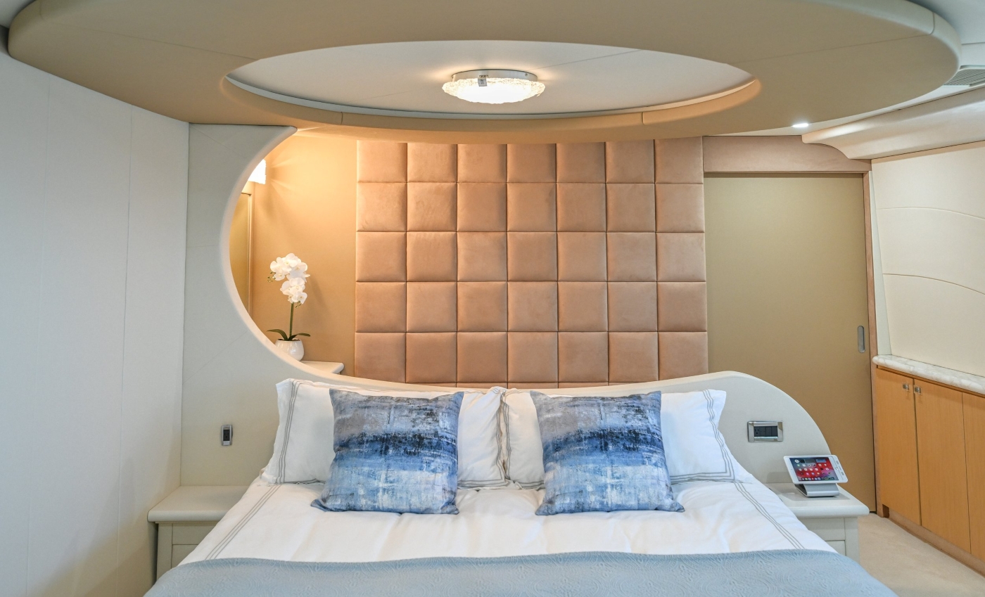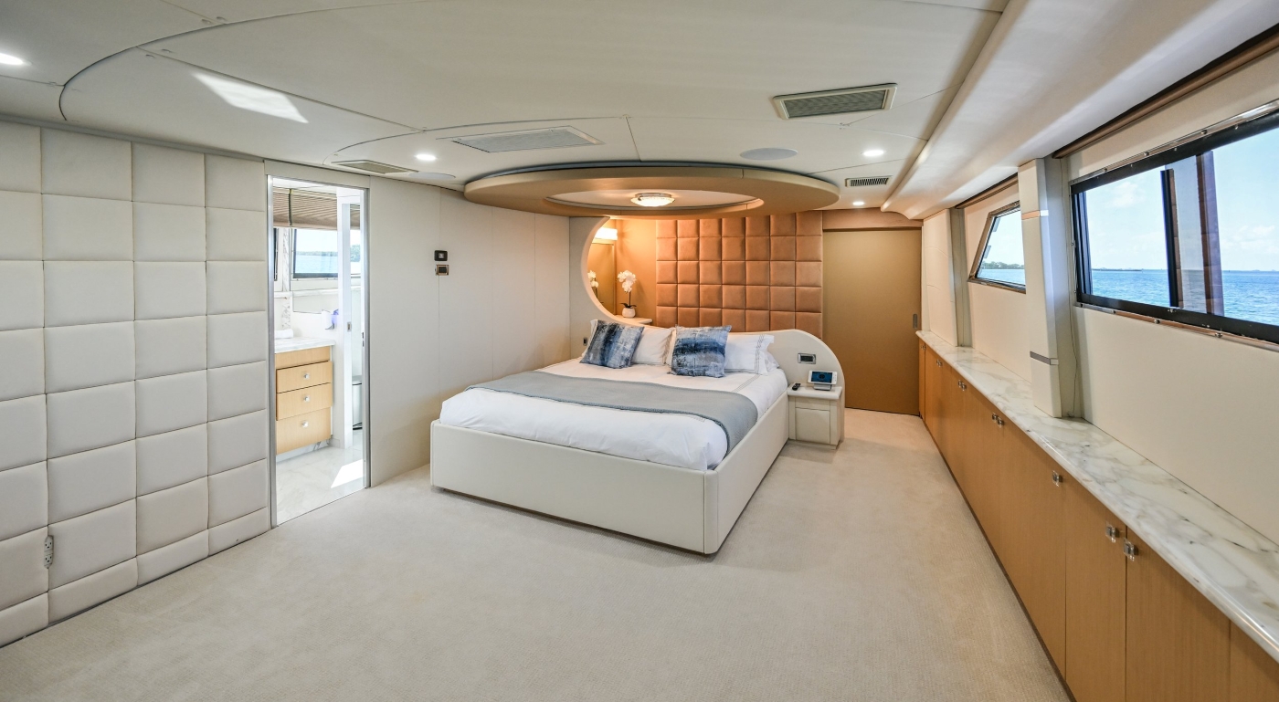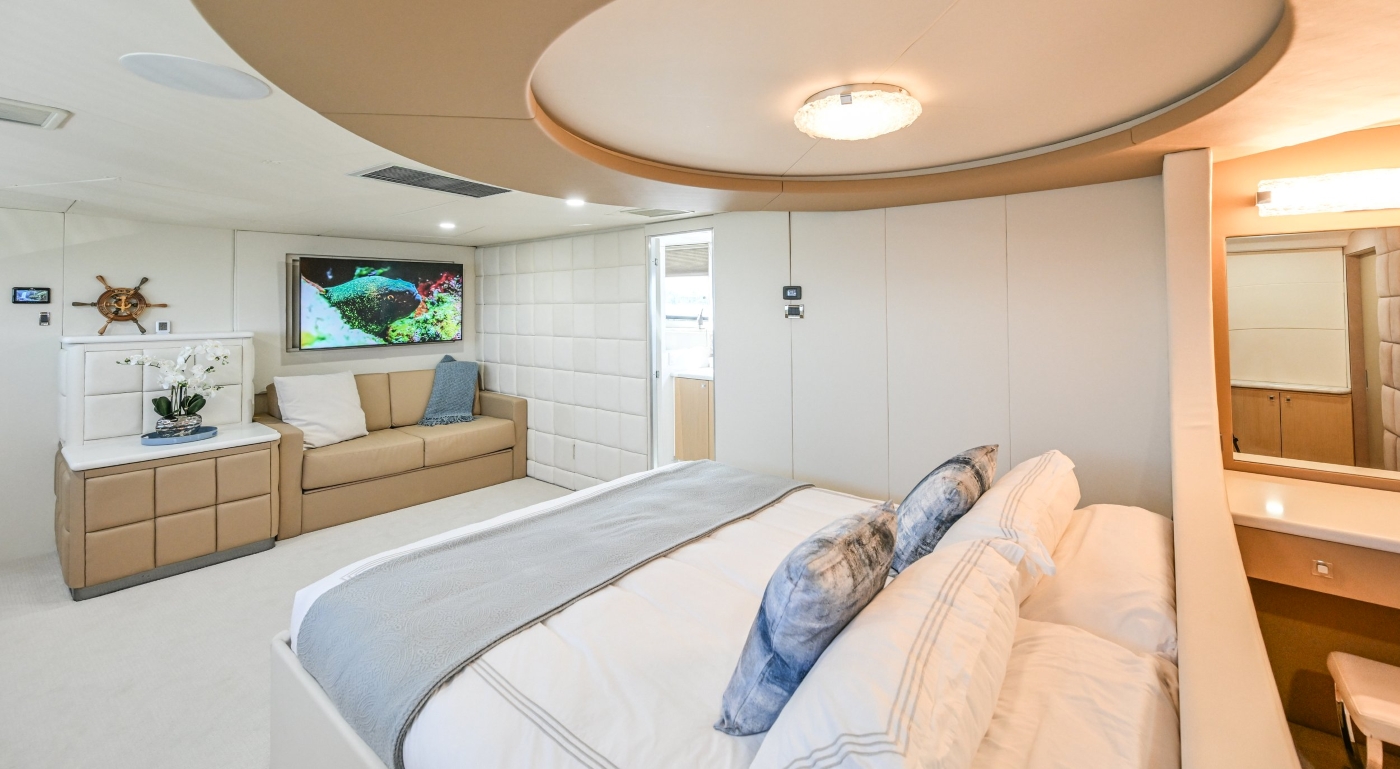 There is a master suite forward on the main deck and four additional suites on the lower deck.