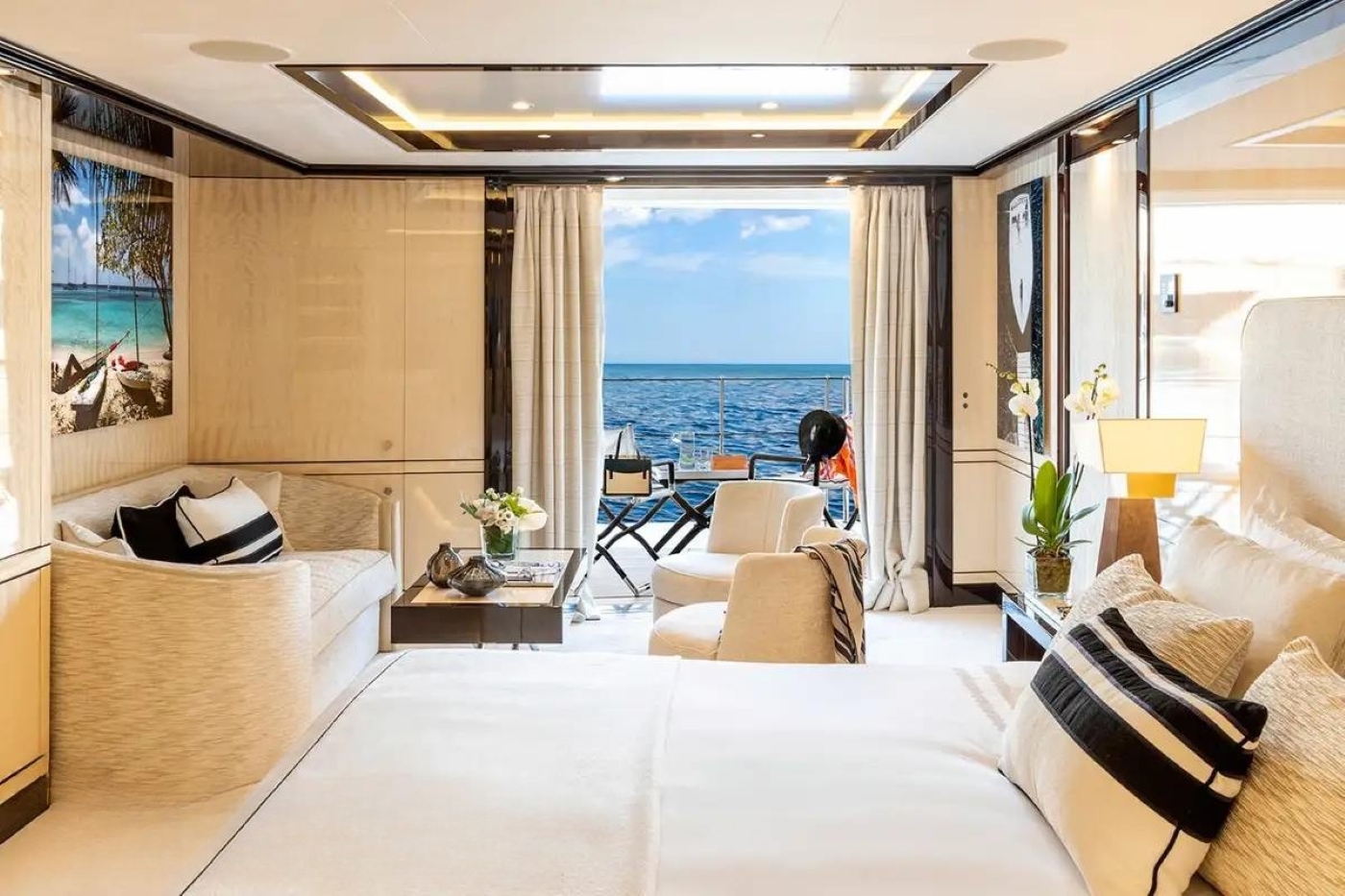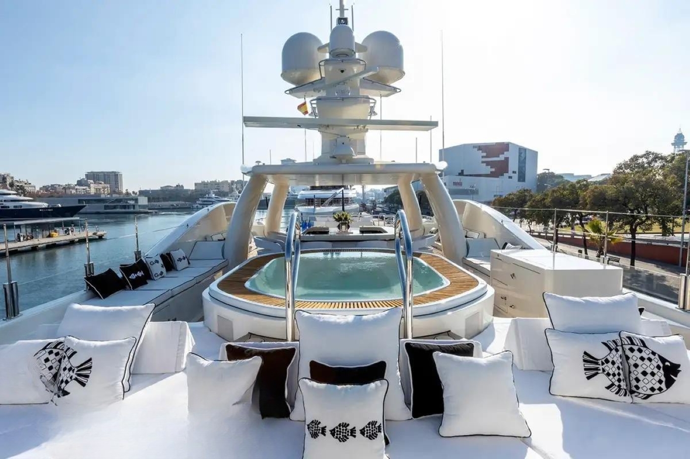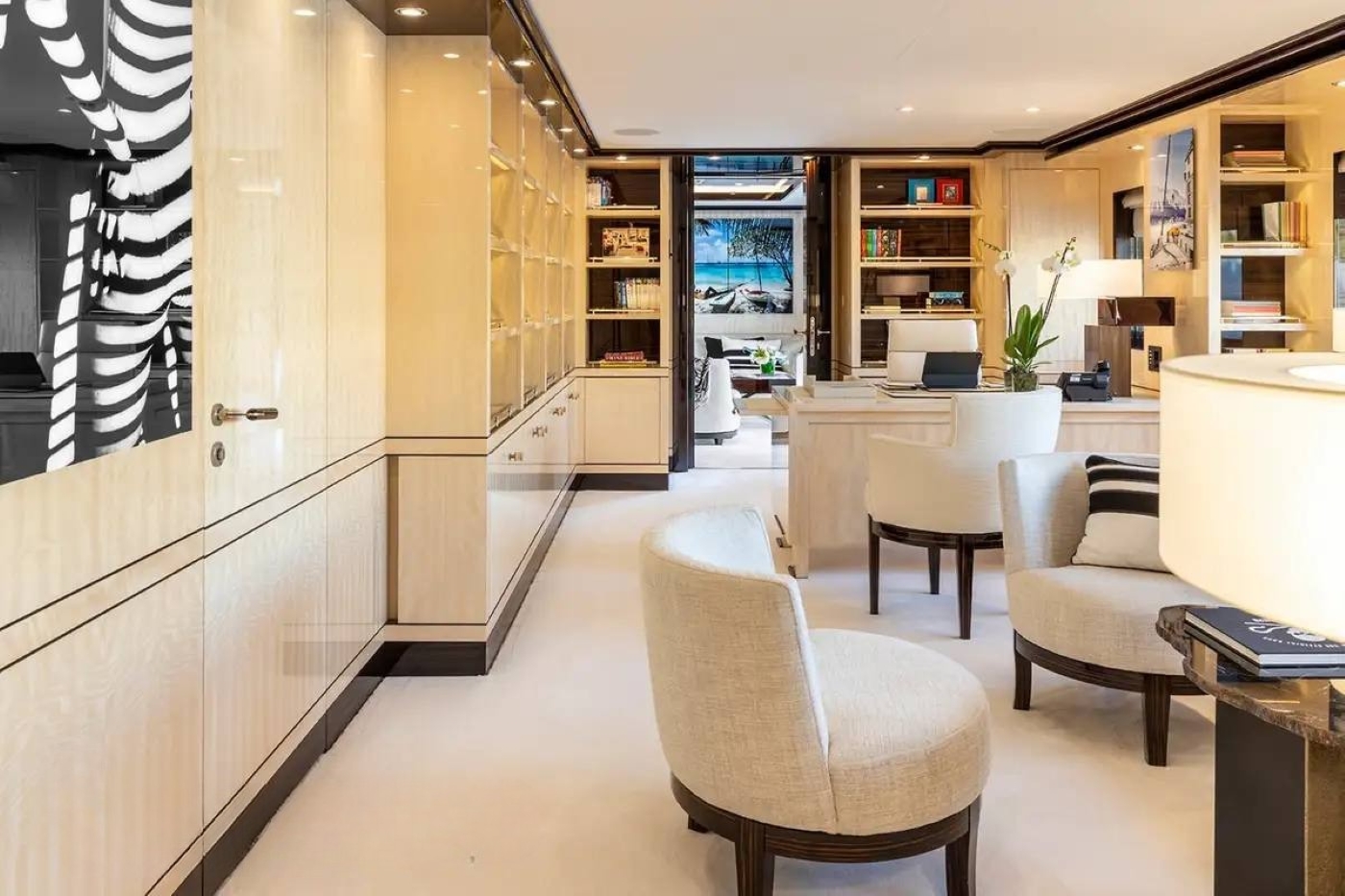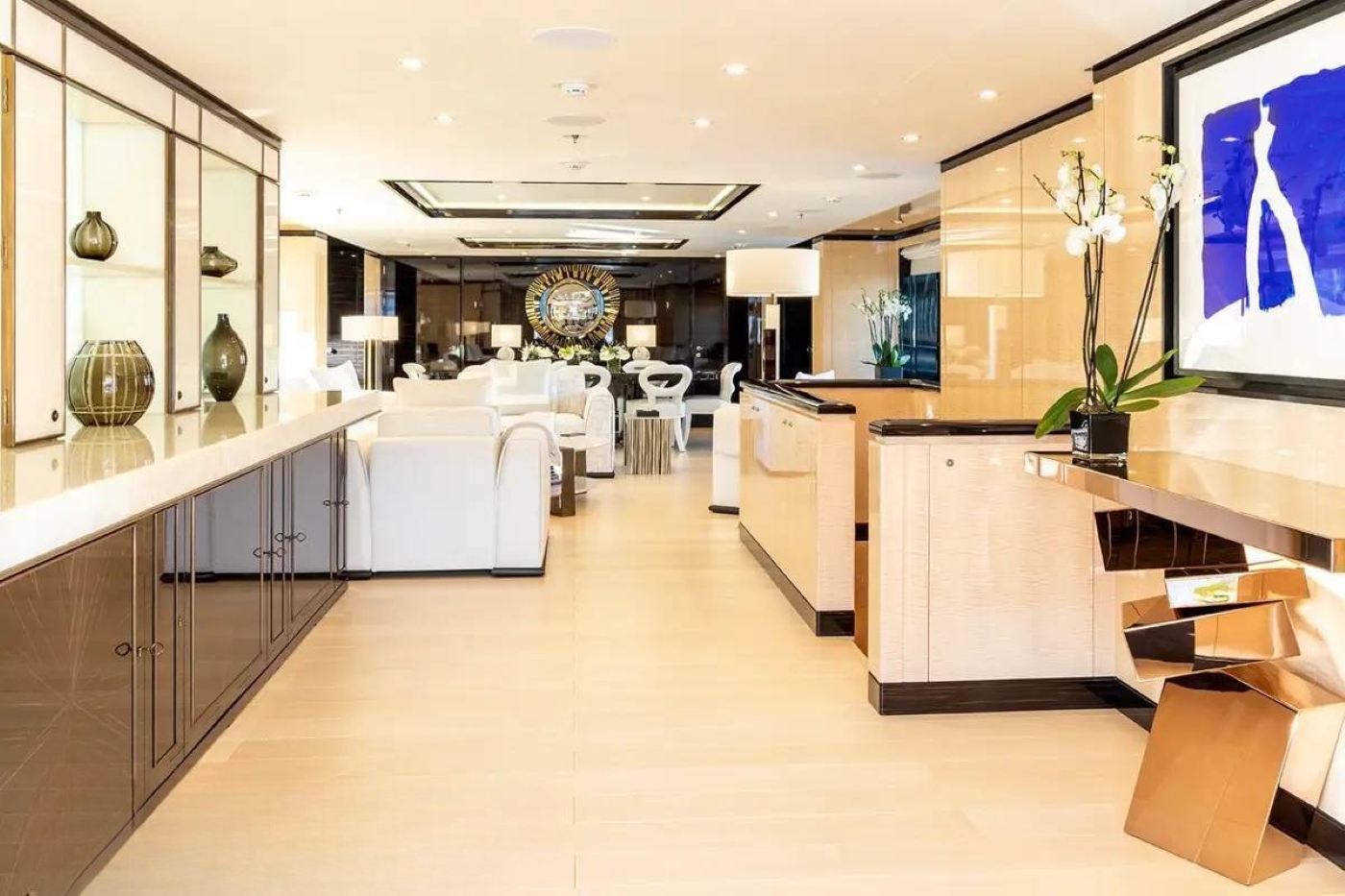 NOTABLE FEATURES OF MELLON: ~Expansive sun deck with Jacuzzi and helipad lounge ~Full-beam master suite with private study and office ~Cinema-screen sky lounge with grand piano ~Beach club with sauna and fold-down swim platform ~Fold-down balconies from main salon ~Opulent lines by Tim Heywood ~Air conditioning and stabilisers ~Gym equipment ~Wi Fi throughout