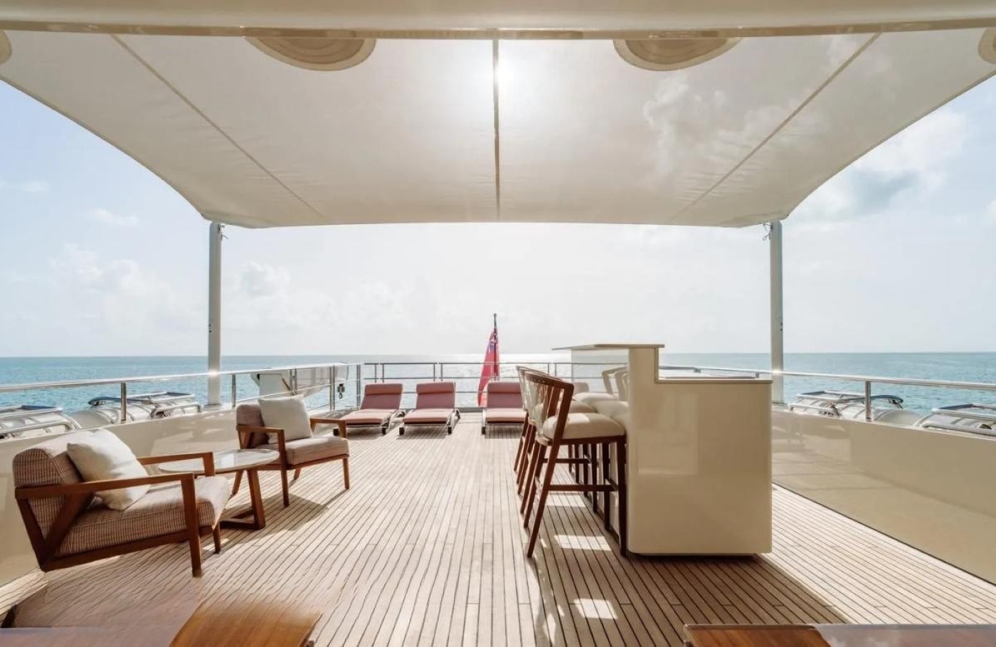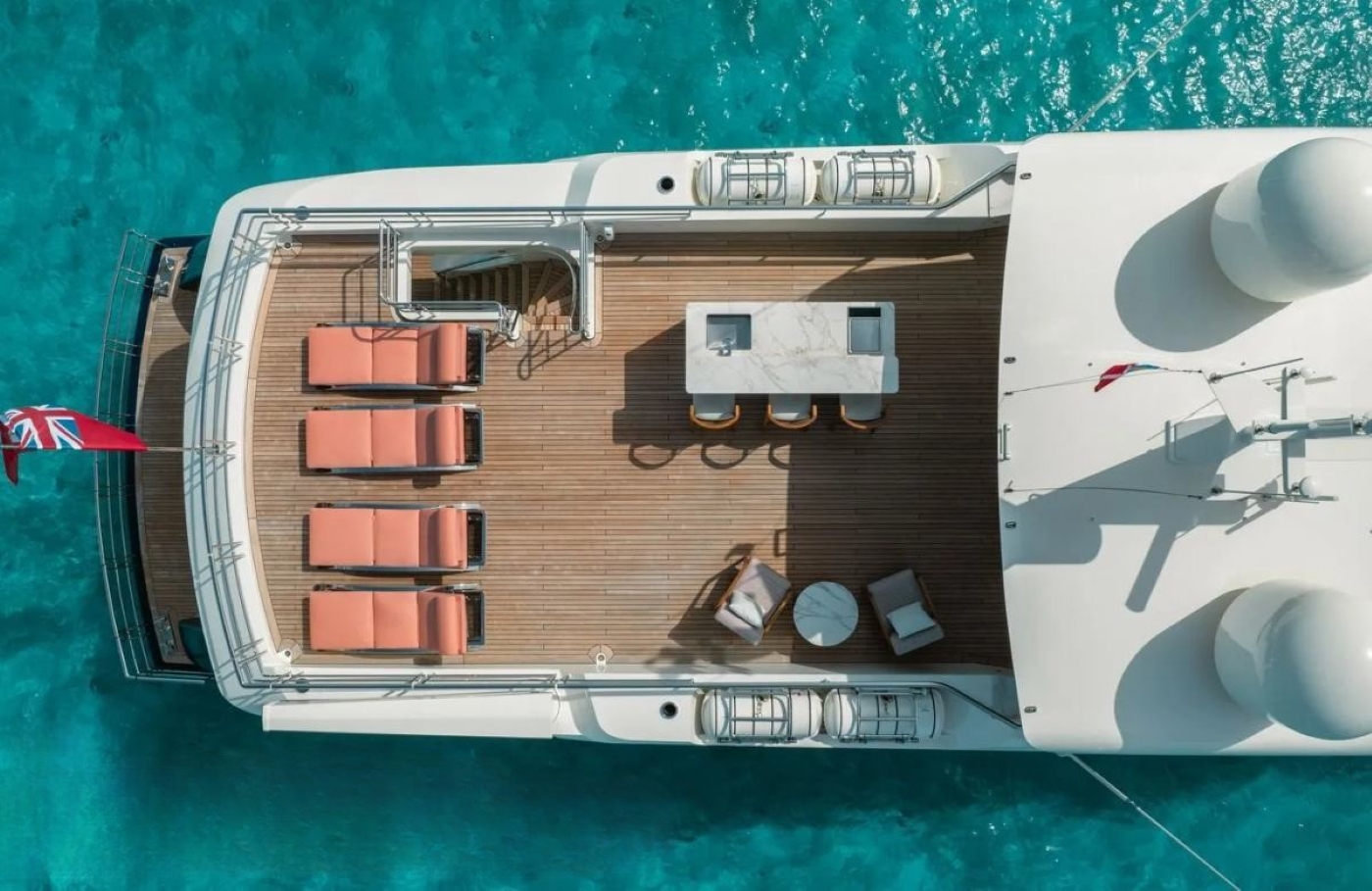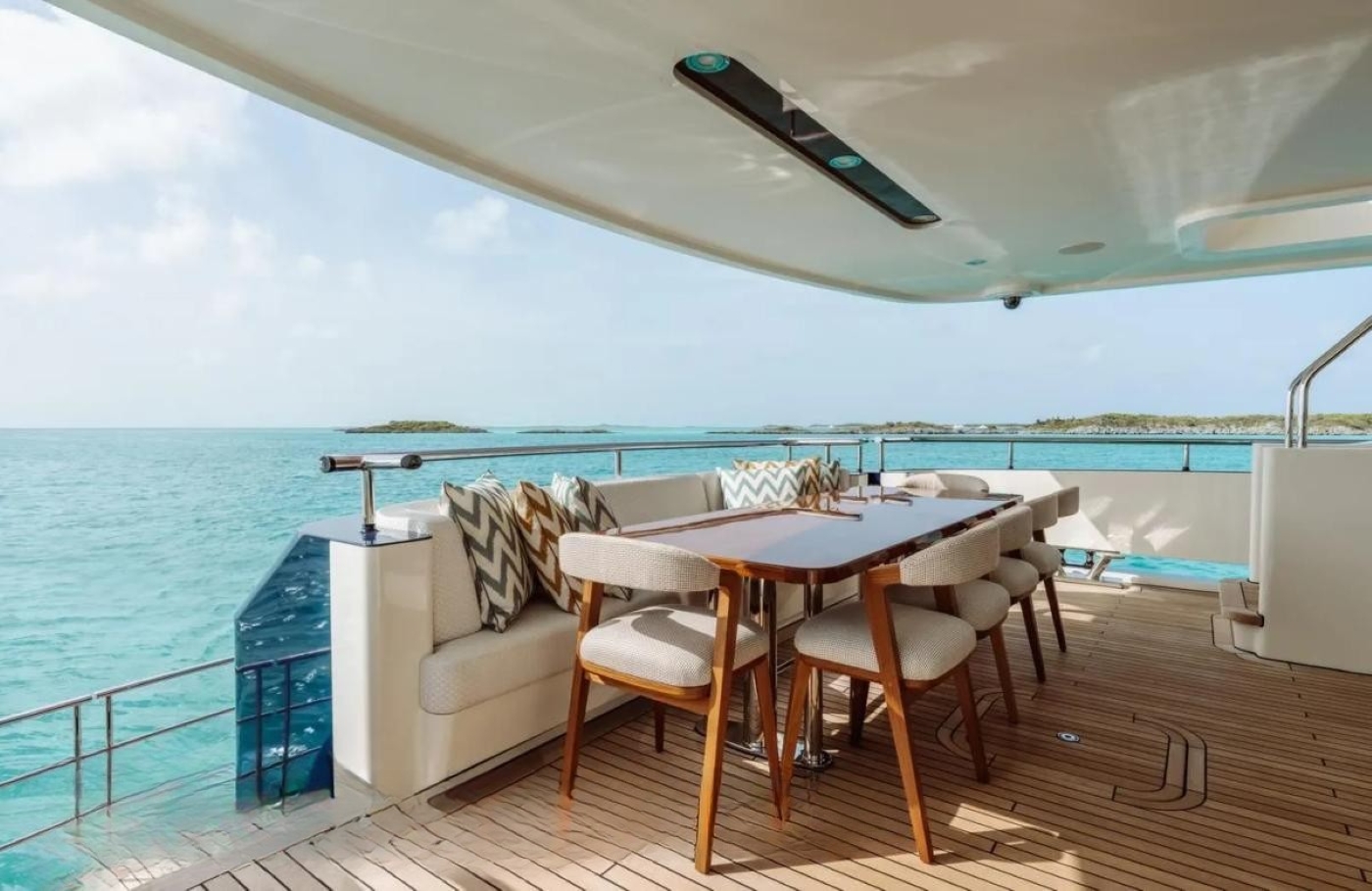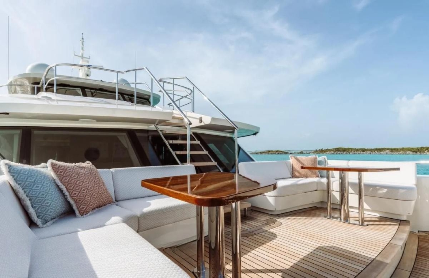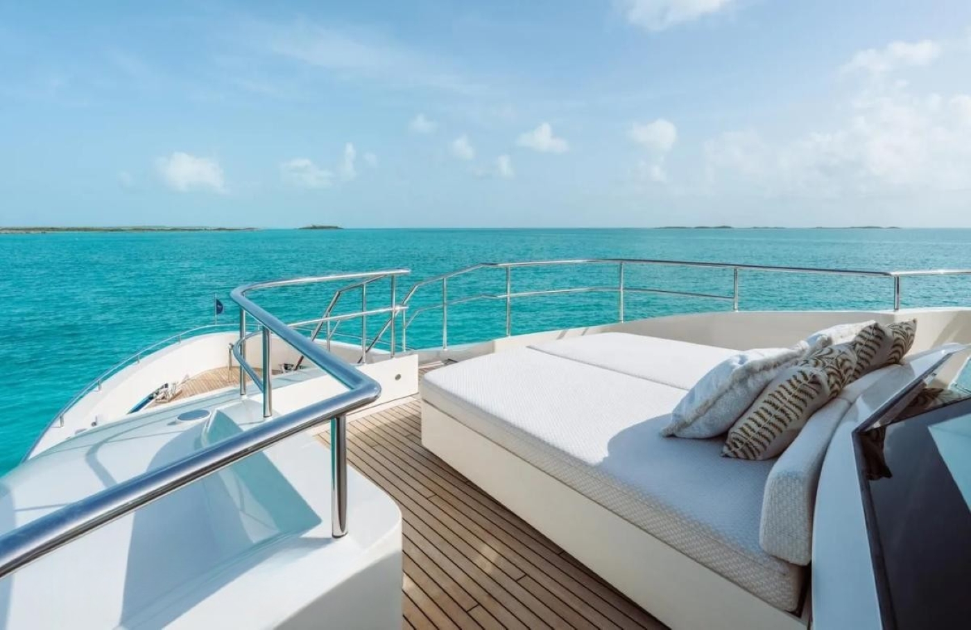 The flybridge hosts a sociable deck which is configured with a sit up bar and grill, day beds, flexible seating ideal for dining or relaxing – all with amazing views. The upper level of the foredeck is perfect for sunbathing with a built-in sun pad.