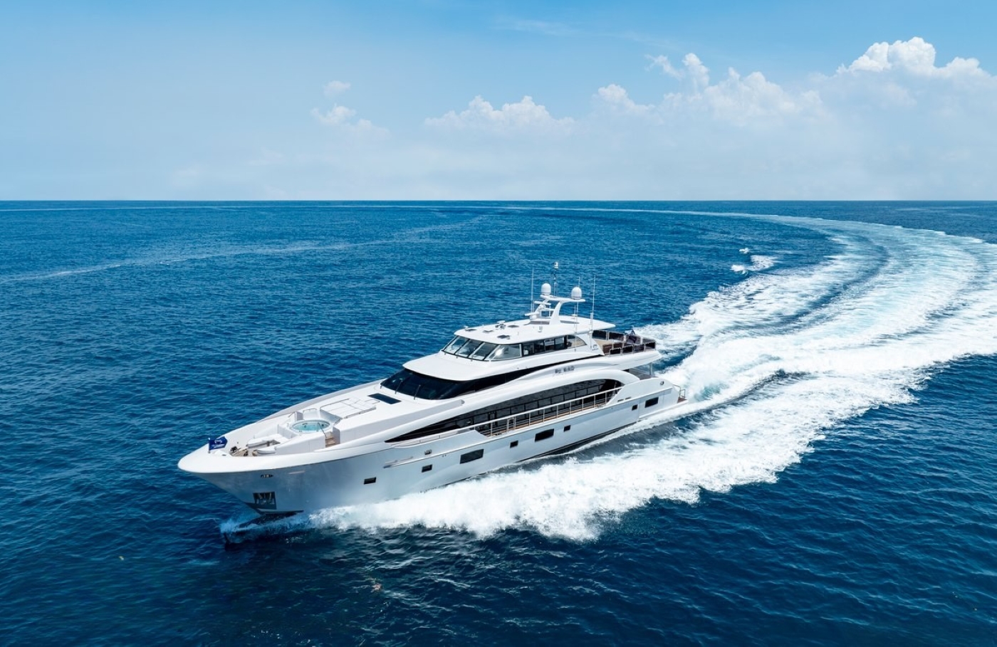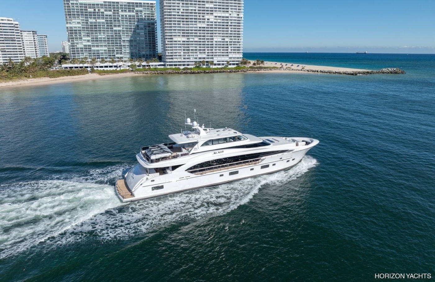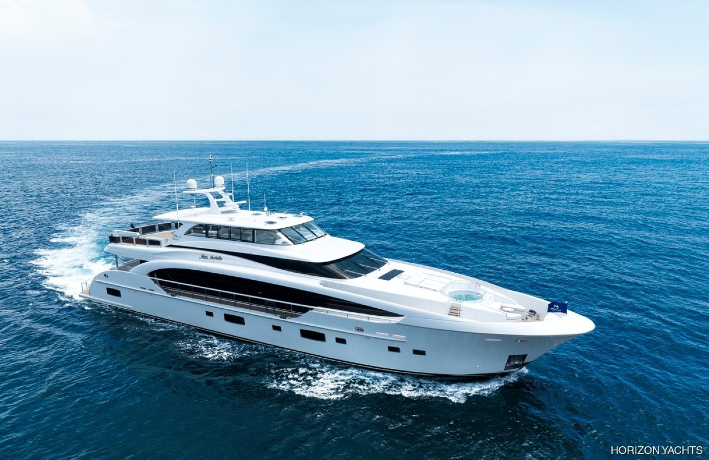 Luxury yacht MISS MICHELLE is a 37.19m (122’) Horizon motor yacht launched in 2025 as the ninth hull in the RP122 series. Characterised by the raised pilot house, her sleek design and personalised features come together, creating expansive, luxury living at its best. Guests are accommodated in one master stateroom and three guest staterooms.
