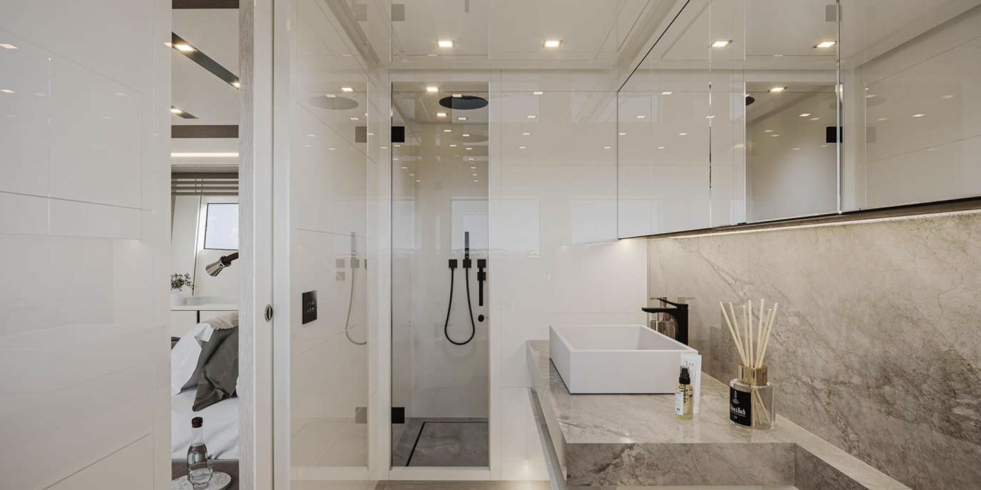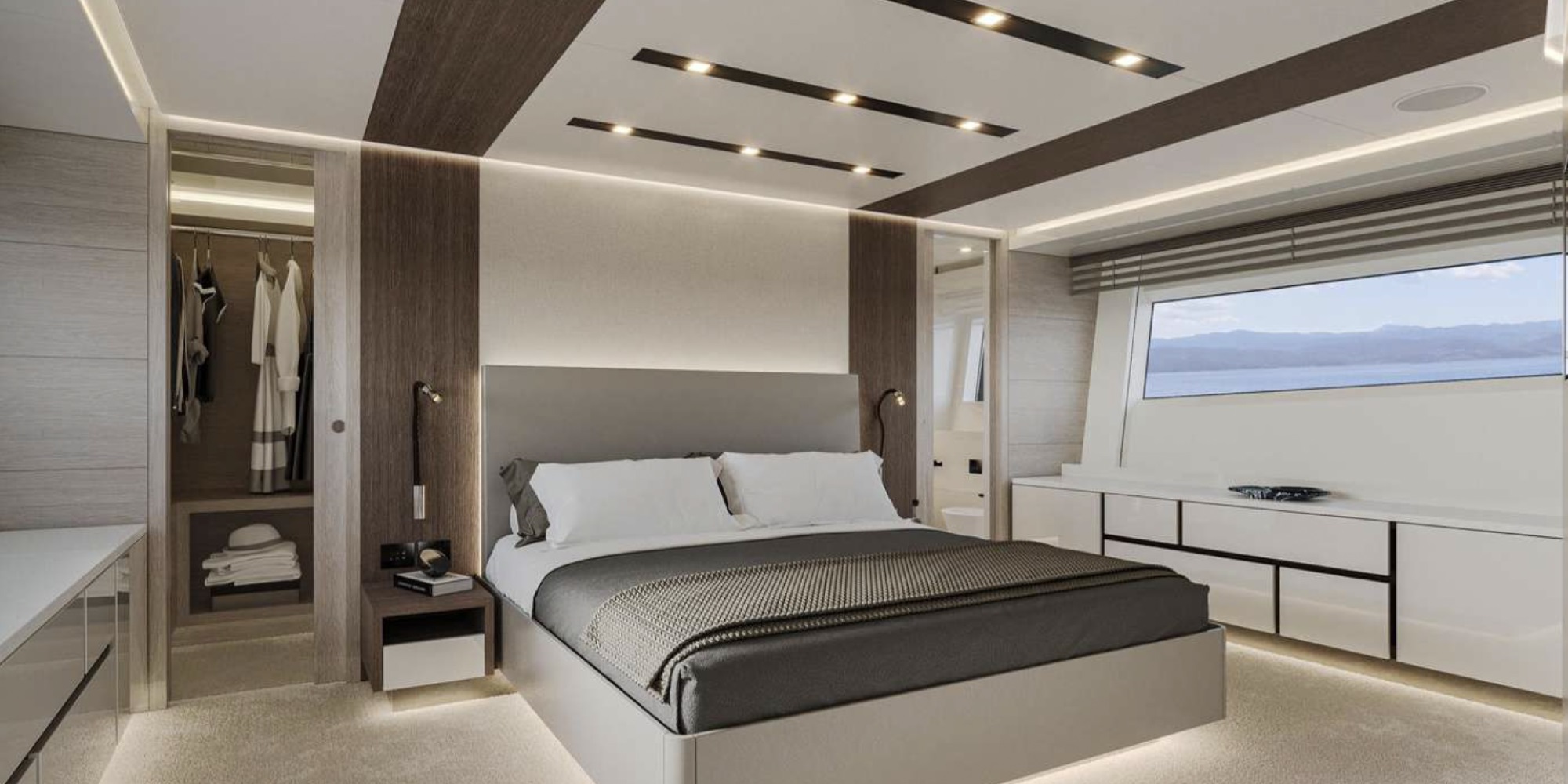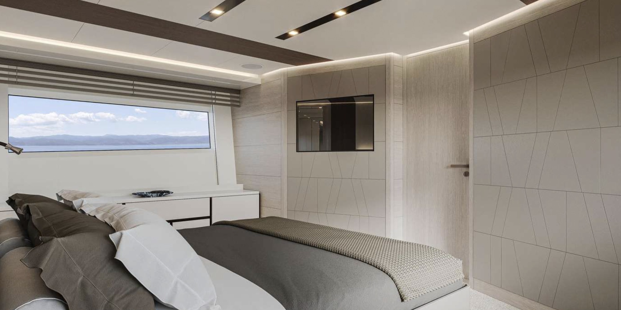 There is a full beam master suite, a bow VIP and a twin on the lower deck which can accommodate up to six guests.