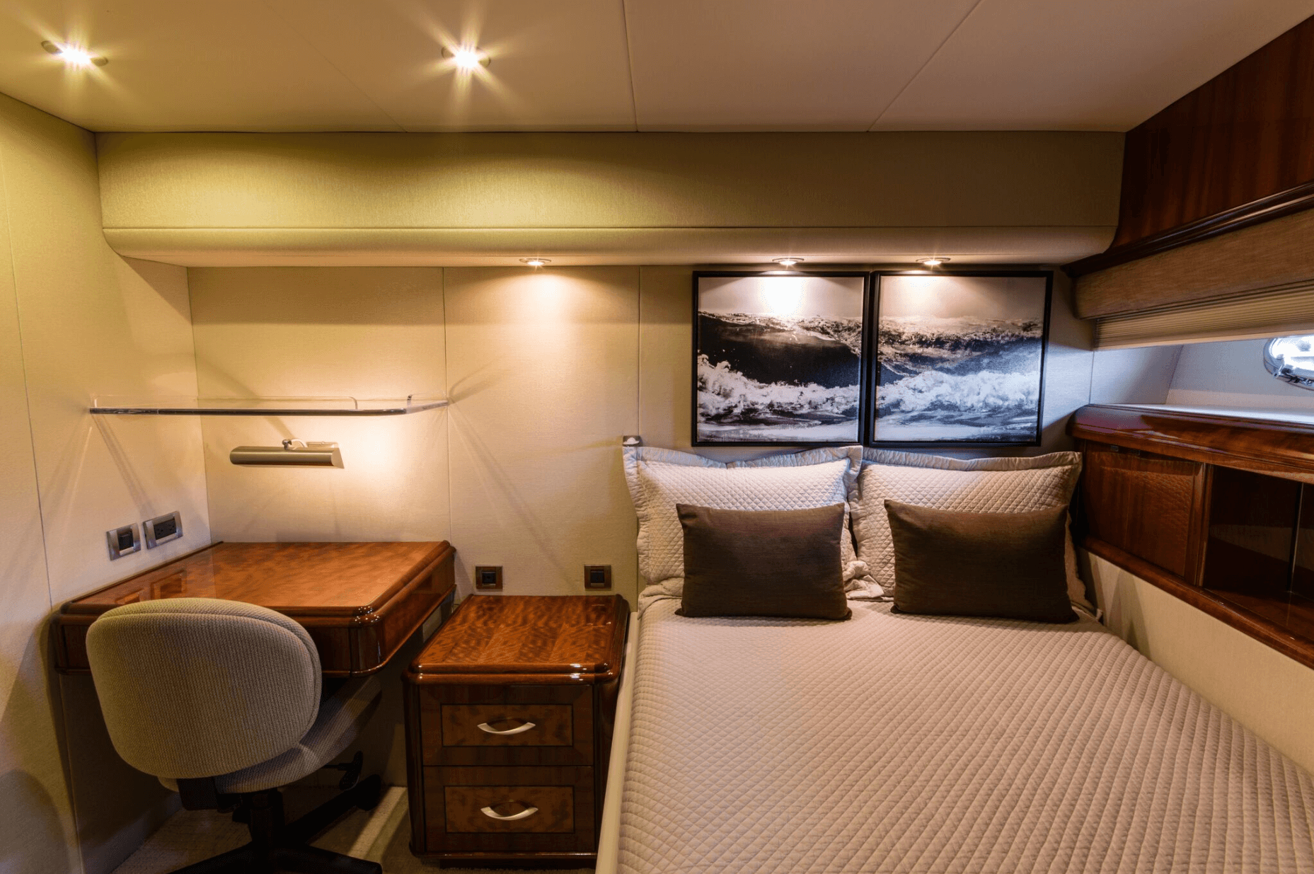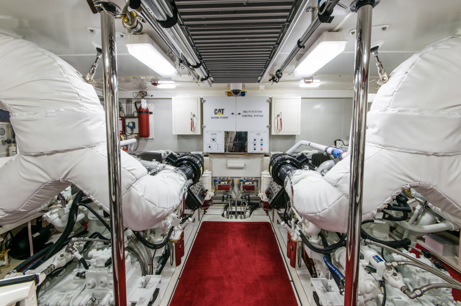 The Caterpillar C32 Diesel engines of 1,550 HP each provide a top speed of an exhilarating 30 knots, and a cruising speed of 25 knots.