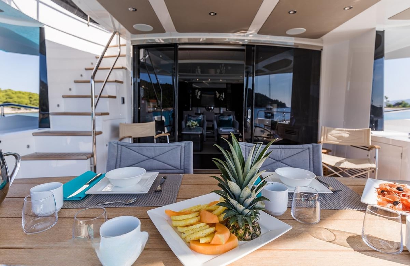 NOTABLE FEATURES: ~ speed ~ comfort ~ modern design ~ deluxe accommodation ~ great outdoor spaces ~ sunbathing areas ~ alfresco and indoor dining ~ at anchor and underway stabilisers ~ WiFi ~ air-conditioning