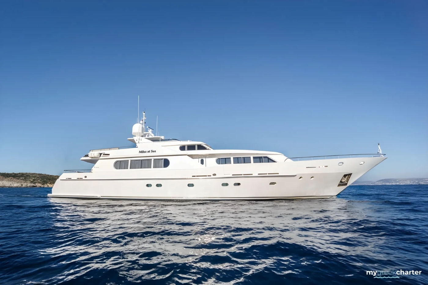 The luxury yacht MILOS AT SEA displayed on this page is merely informational and she is not necessarily available for yacht charter or for sale, nor is she represented or marketed in anyway by CharterWorld. This web page and the superyacht information contained herein is not contractual. All yacht specifications and informations are displayed in good faith but CharterWorld does not warrant or assume any legal liability or responsibility for the current accuracy, completeness, validity, or usefulness of any superyacht information and/or images displayed. All boat information is subject to change without prior notice and may not be current.