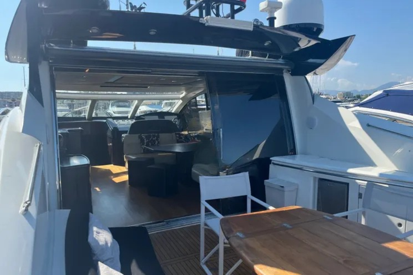 NOTABLE FEATURES OF NERO OCEANO: ~Spacious open yacht ~Soft bimini shade over aft deck ~Airy main salon ~Lower deck salon and galley ~Sir conditioning ~WiFi