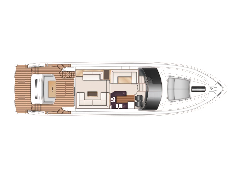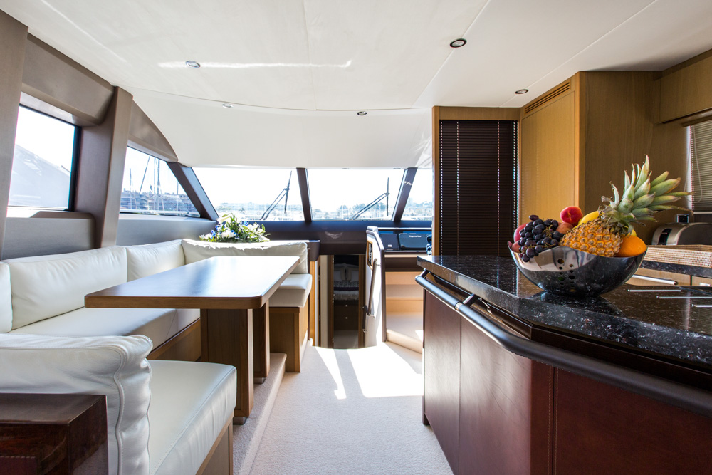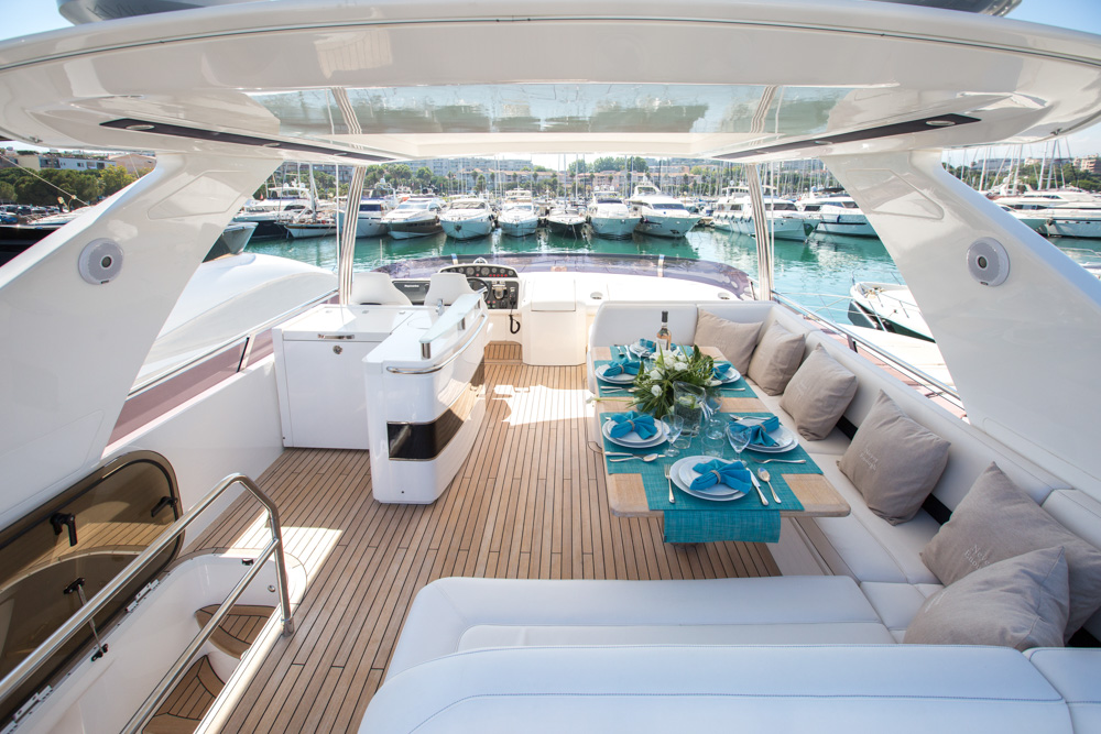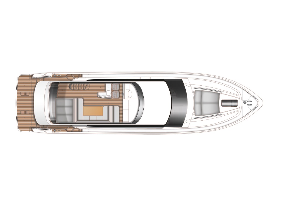 The flybridge provides guests with great views and space for outdoor socialising while the spacious aft exterior deck provides a possibility for alfresco dining.