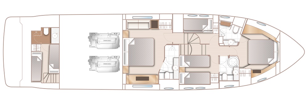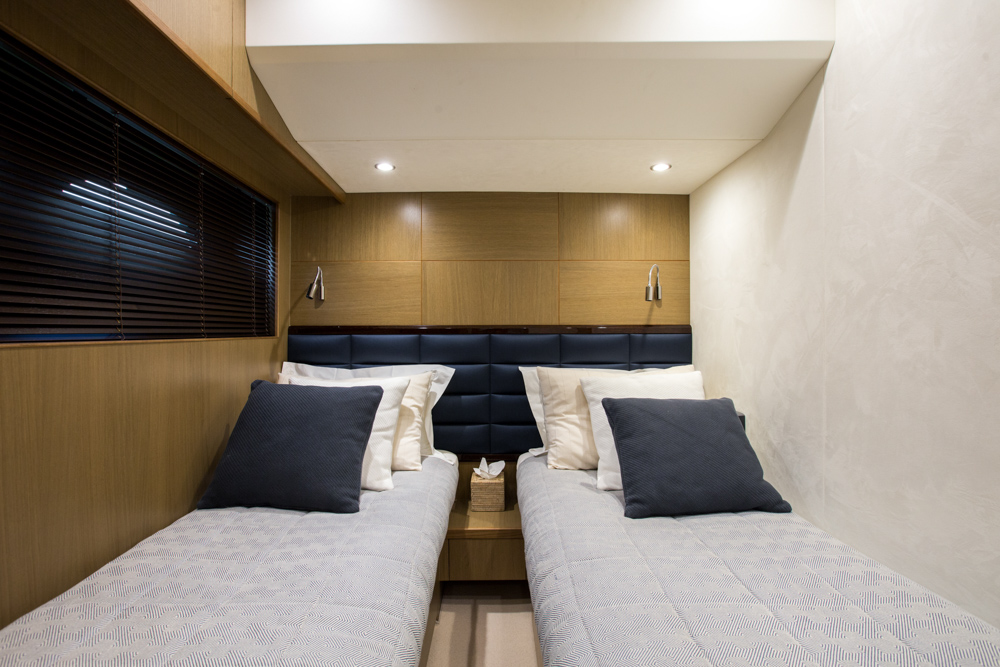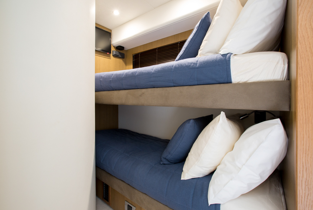 Accommodation on board NEVER ENOUGH is offered for up to eight charter guests, spreading over four deluxe cabins with private ensuite bathroom facilities. There is a spacious master suite, one comfortable double cabin as well as a twin cabin, offering flexible accommodation and great layout for families or a group of friends.