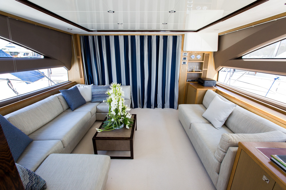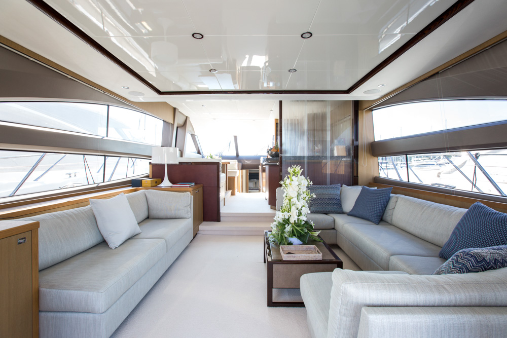 Interiors of the yacht feature an inviting saloon with modern, timeless design and a possibility to fully relax when on board.