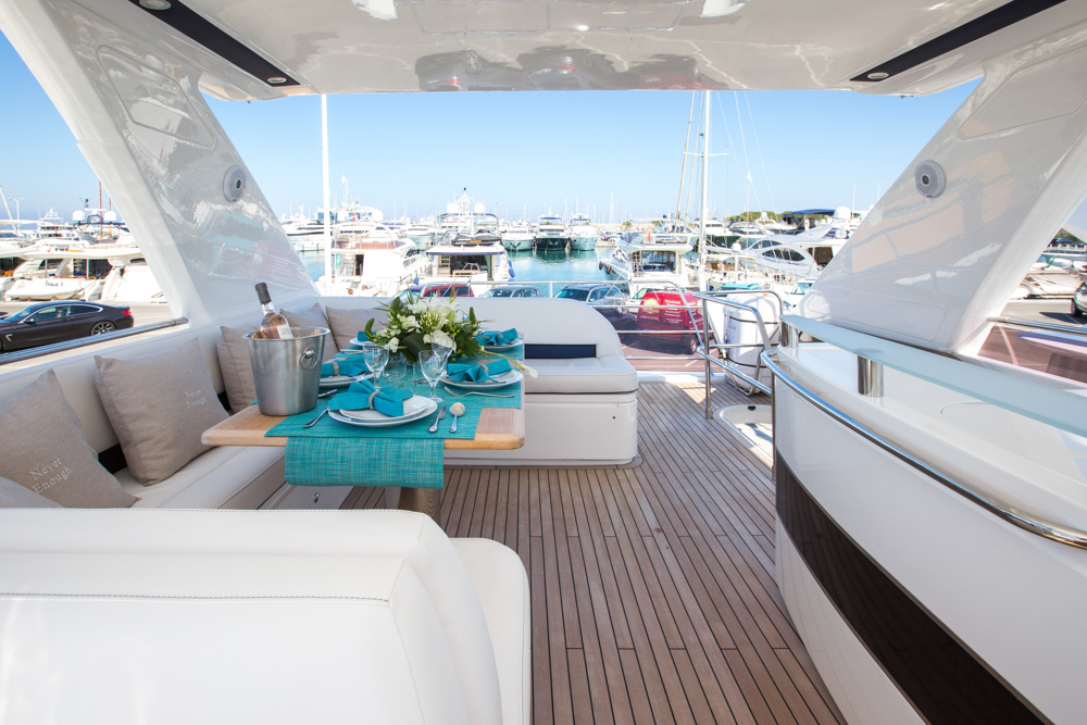 Motor yacht NEVER ENOUGH was launched in 2014 by Princess Yachts and measures 20.01m (65.8ft). The yacht accommodates up to 8 charter guests, in 4 cabins and has a professional crew of 2 on board.