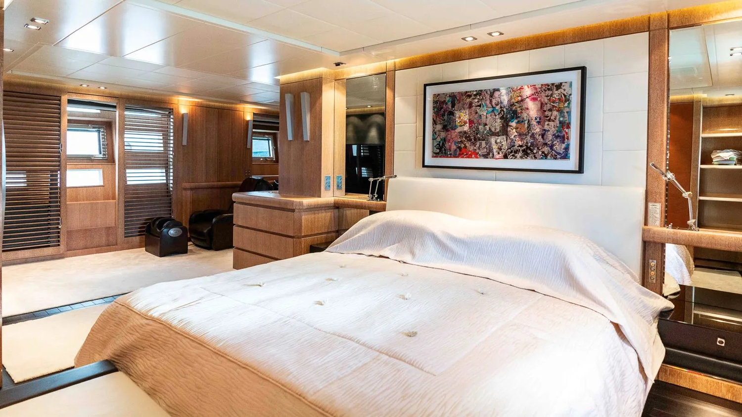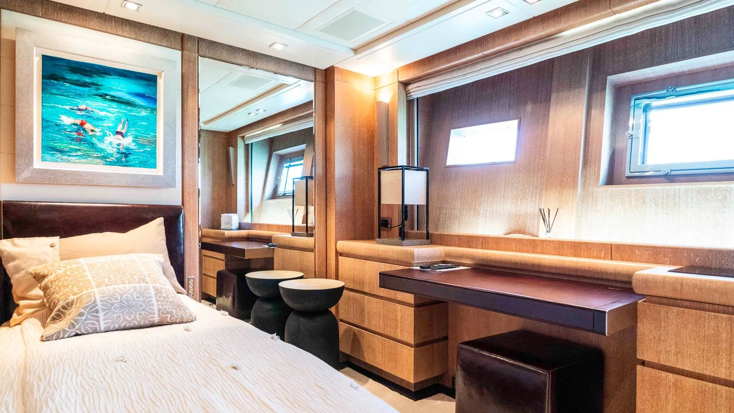 NINO welcomes up to 11 guests across five stylish cabins: ~ Master suite: Full-beam with king-sized bed, private office, spa-style en-suite, and massage chair ~ VIP stateroom: Generously proportioned with queen-sized bed and en-suite ~ 2 Twin/Double convertible cabins with en-suites ~ 1 Dedicated accessible cabin with en-suite, ideal for guests with mobility needs ~ Additional Pullman beds for flexible accommodation