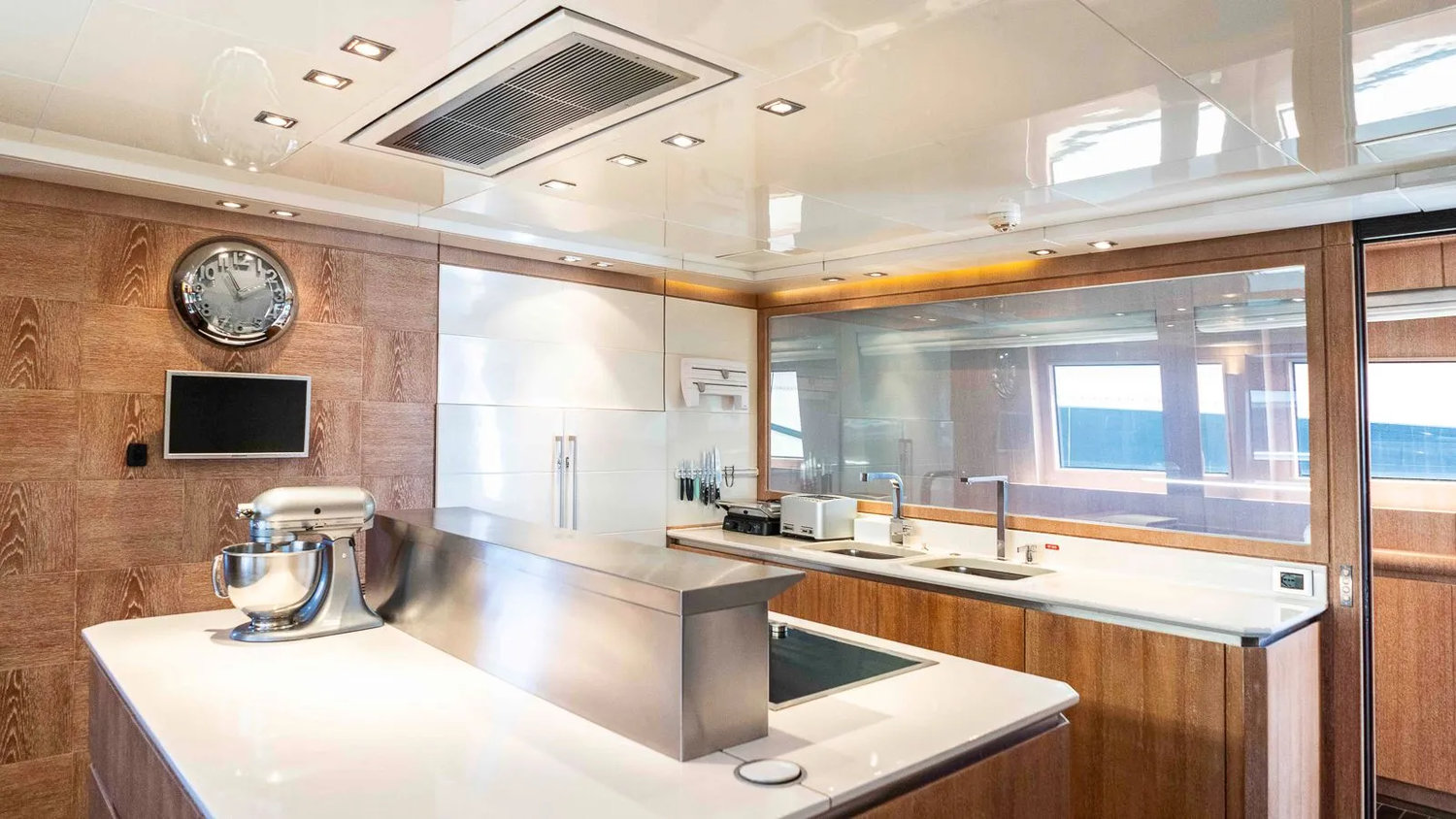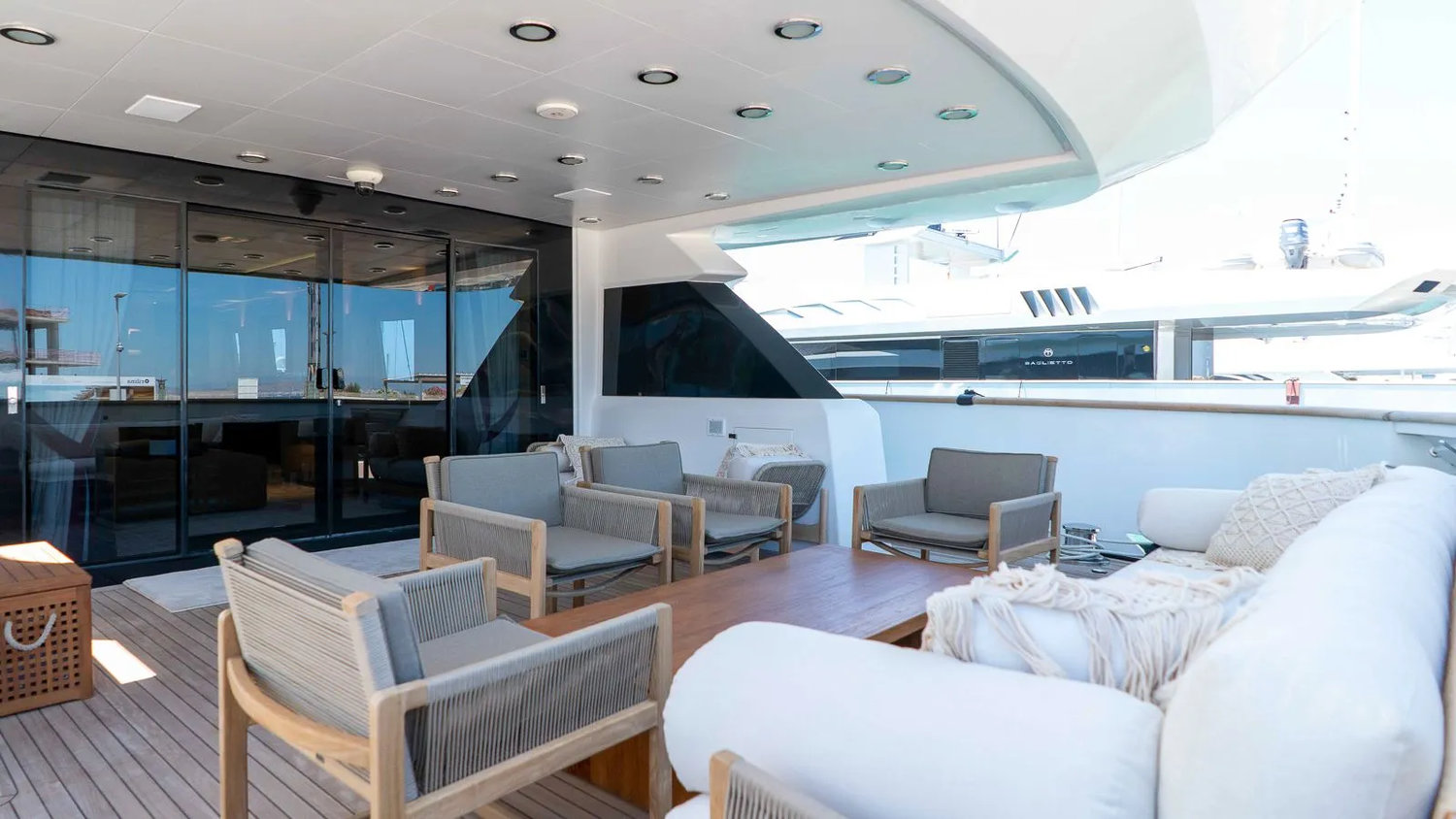 The yacht’s full-beam swim platform includes a hydraulic lift for easy access to the sea, ideal for water sports or simply a tranquil dip. Wide side decks and thoughtful design details throughout ensure safe and comfortable movement for guests of all ages, including those with reduced mobility.