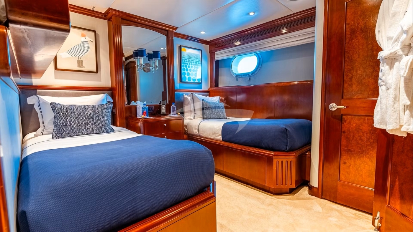 While up to 12 guests can stay on board while cruising, the accommodation provides for up to 8 guests over 4 cabins: 1 Master suite, 2 double cabins and 1 twin cabin with a Pullman berth. The expert crew of 6 will ensure that all guests receive a first-class service throughout the charter.