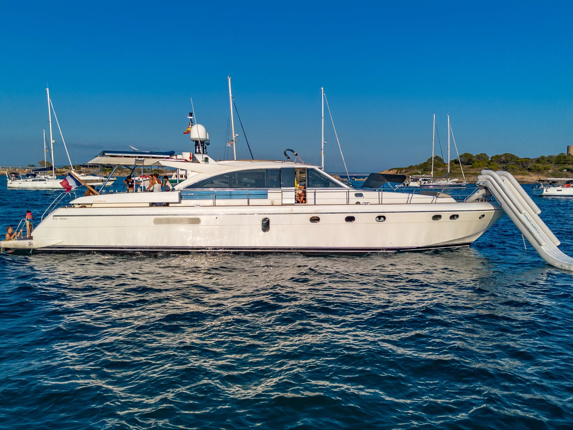 Built by the esteemed French yard Guy Couach, motor yacht PARODIA is a polished 70 ft (21 m) vessel launched in 2006 (alternatively listed as 2004) and beautifully presented as a fresh addition to the charter market. Her sleek 2100 Open profile emphasises generous deck living, a retractable helm roof and contemporary seaside elegance. Accommodating eight overnight guests across four ensuite cabins and supported by a professional captain and stewardess.
