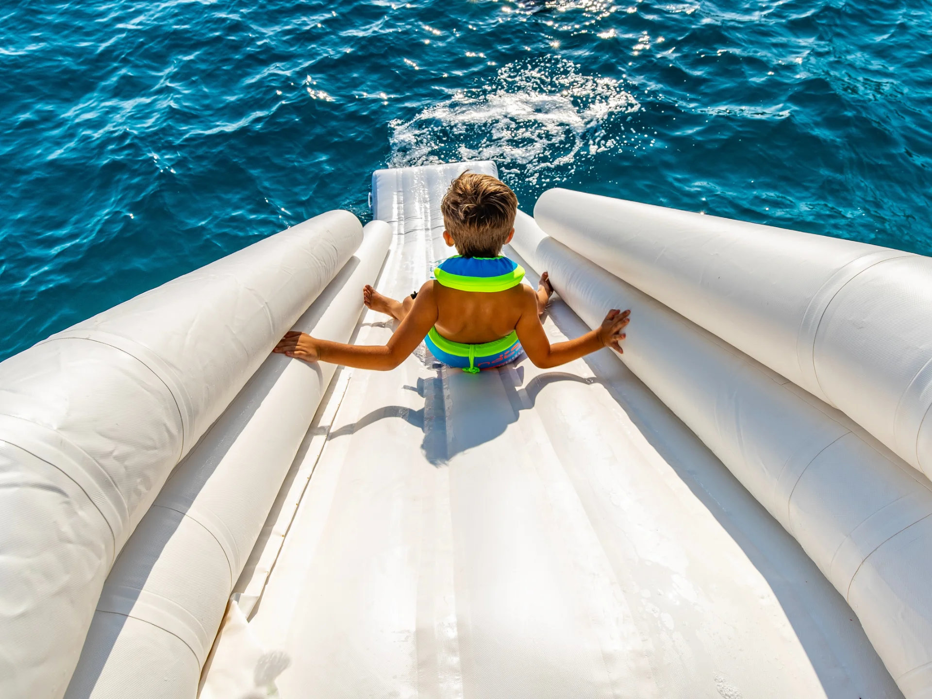 Tenders and Toys ~ RIB tender with outboard for beach landings and water access ~ Jetski (subject to licence) ~ Seabob ~ Water slide and towable inflatables Watersports Equipment ~ Snorkelling gear for underwater exploration ~ Towables for additional onboard fun Audio Visual Equipment and Deck Facilities ~ Surround sound audio system with flat screen TV in salon ~ Alfresco dining table and cushioned lounging for elegant outdoor entertainment ~ On deck barbecue facility for casual dining al fresco Communications ~ Satellite Wi Fi and air conditioning throughout for guest comfort