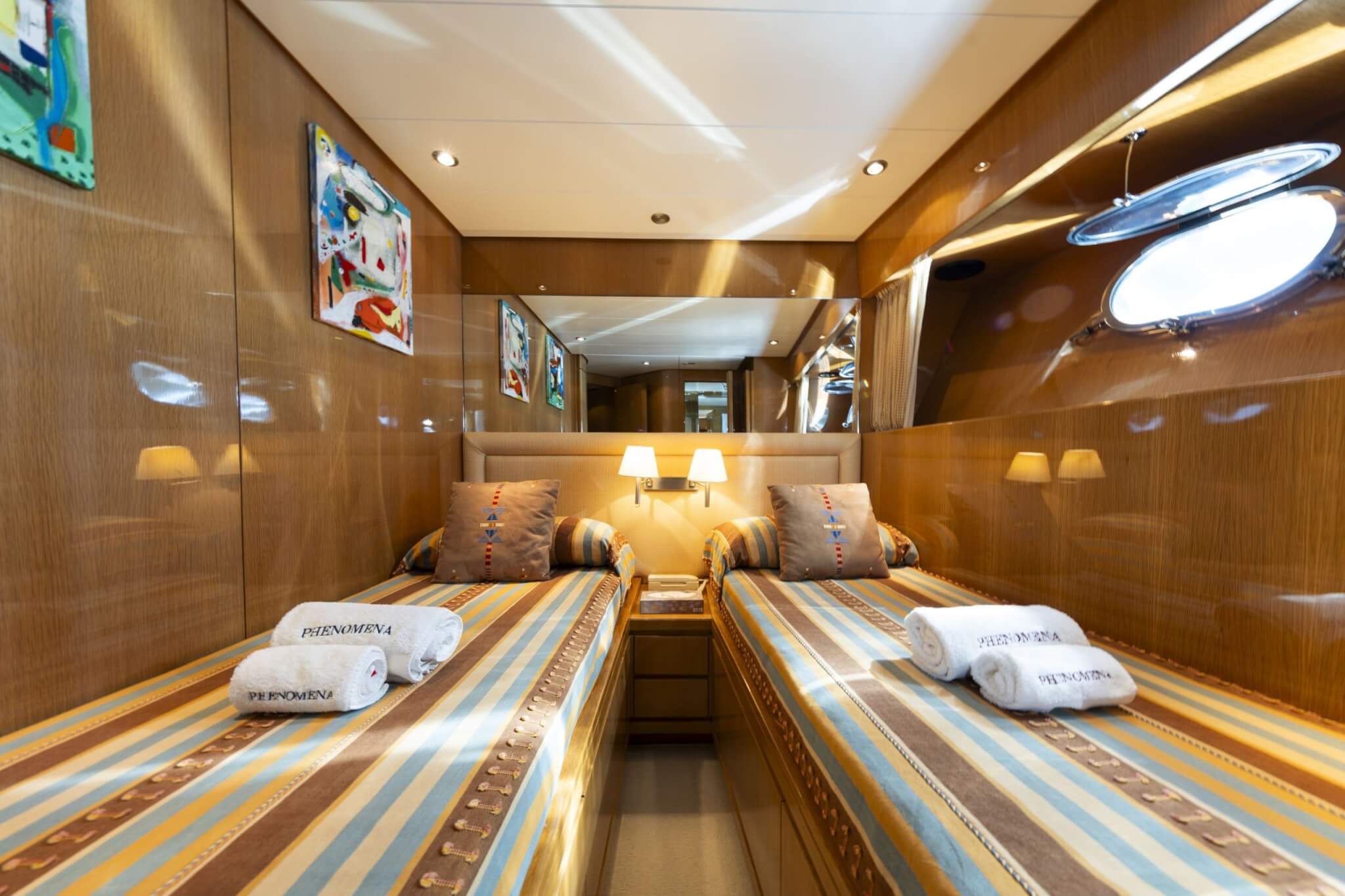 The luxury yacht PHENOMENA displayed on this page is merely informational and she is not necessarily available for yacht charter or for sale, nor is she represented or marketed in anyway by CharterWorld. This web page and the superyacht information contained herein is not contractual. All yacht specifications and informations are displayed in good faith but CharterWorld does not warrant or assume any legal liability or responsibility for the current accuracy, completeness, validity, or usefulness of any superyacht information and/or images displayed. All boat information is subject to change without prior notice and may not be current.