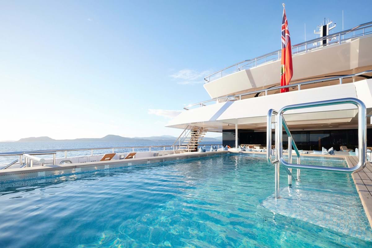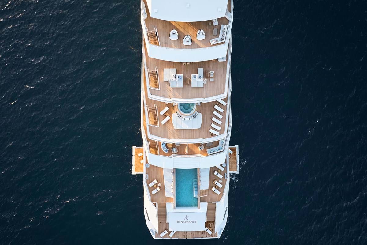 NOTABLE FEATURES OF RENAISSANCE: ~Vast owners’ deck with private terraces ~Spa deck with wellness centre ~Multiple al fresco dining settings ~Stunning beach club with loads of water toys ~Commercial helipad ~Swimming pool and two jacuzzis ~Cinema ~At anchor and underway stabilisers ~Approved RYA water sports centre
