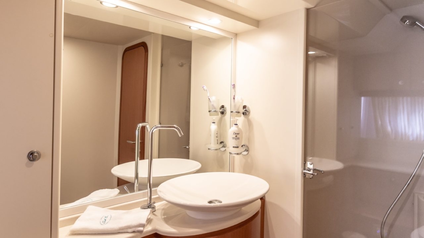 The guest accommodation is configured as two queen and two twin cabins, all with the privacy of ensuite bathroom facilities.