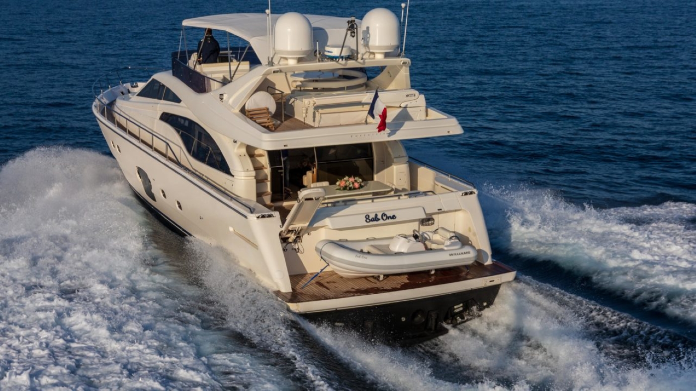Motor yacht SABONE is a 21.20m (69' 7") Ferretti built in 2008 and benefiting from a full refit in 2022. She features a generous flybridge with retractable soft bimini, spacious interiors and a selection of water toys. Eight guests can be accommodated onboard in four luxury cabins, looked after by a crew of two.