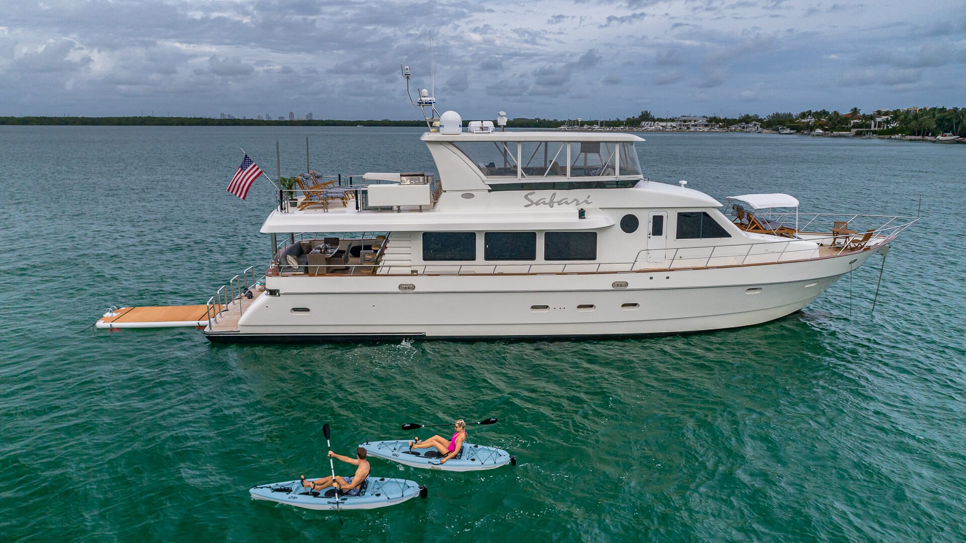 Motor yacht SAFARI measures 24.38m (80') and was launched in 2002 by Symbol shipyard, while she has received a refit in 2016. Her accommodation comprises 3 cabins and sleeps in a total of 6 guests. She has a crew of 3 on board.