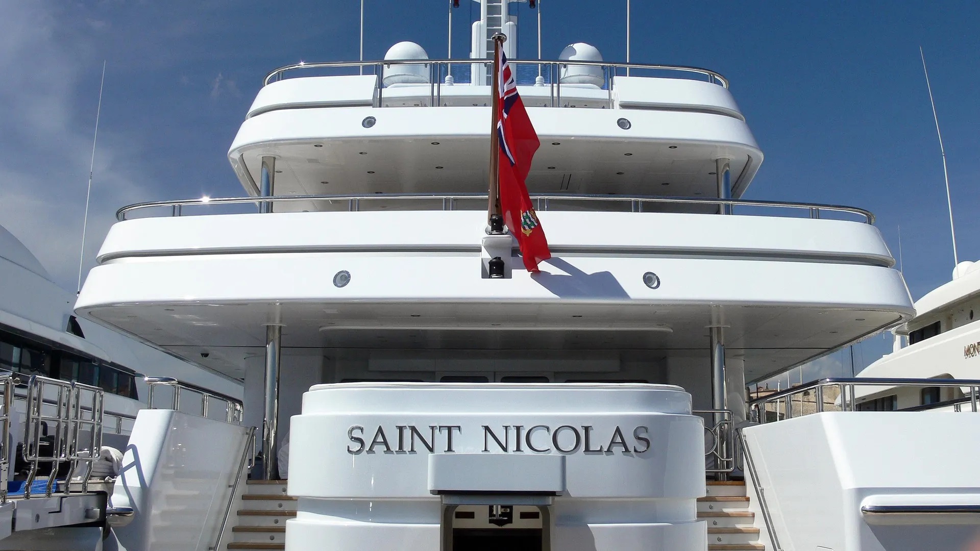 NOTABLE FEATURES OF SAINT NICOLAS: ~Six deck superyacht ~Deck pool with swim up bar ~Huge al fresco entertainment space ~Huge interior volume ~12 guests and 19 crew ~Air conditioning ~WiFi
