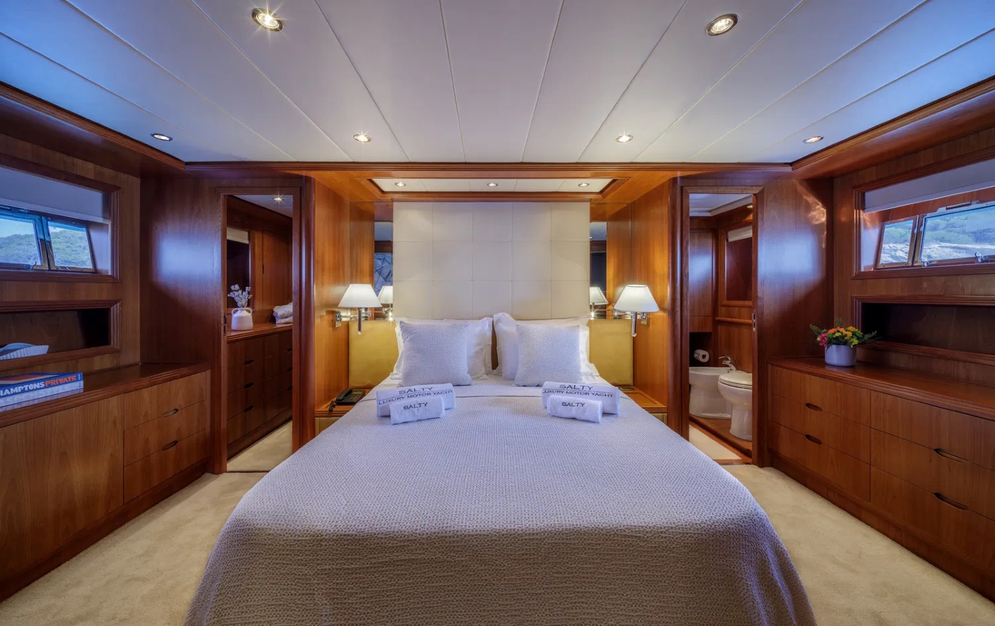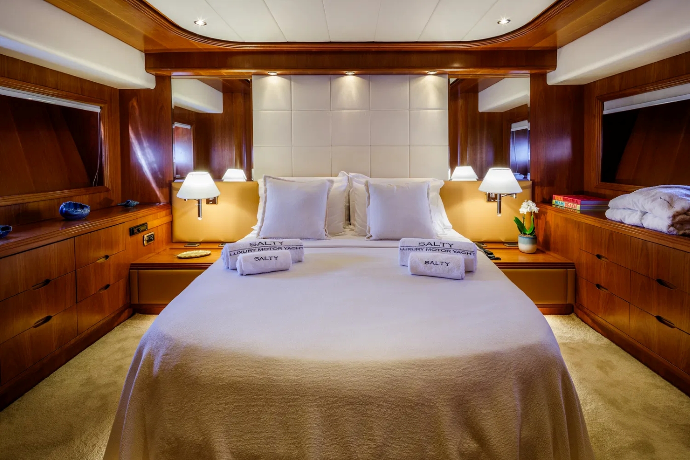 NOTABLE FEATURES OF SALTY: ~Large and light interior salon ~Large open and shaded exterior relaxation areas ~Top speed of 33 knots ~Air conditioning ~Wi-fi