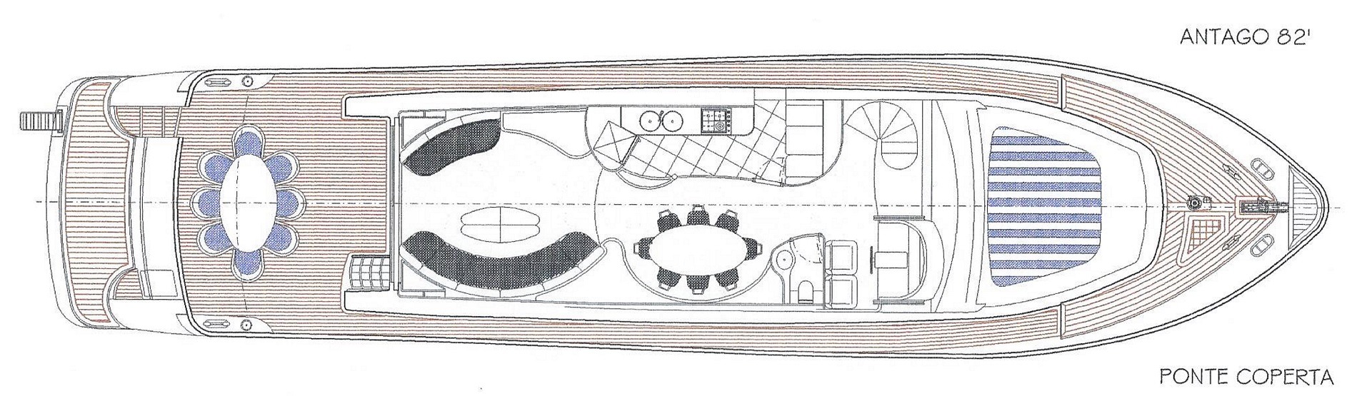 Built by the Italian shipyard Antago in Viareggio, the 25.4-metre motor yacht SEVEN STARS combines classic Mediterranean style with a warm colonial-inspired interior. Launched in 2004 and comprehensively refitted in 2023, she boasts a sleek planing hull and an express flybridge layout that makes her ideal for exploring the Amalfi Coast, Capri and the islands of Sicily. With accommodation for up to 8 guests across 4 well-appointed cabins and a crew of 4, she delivers authentic Italian hospitality in a beautifully relaxed setting.