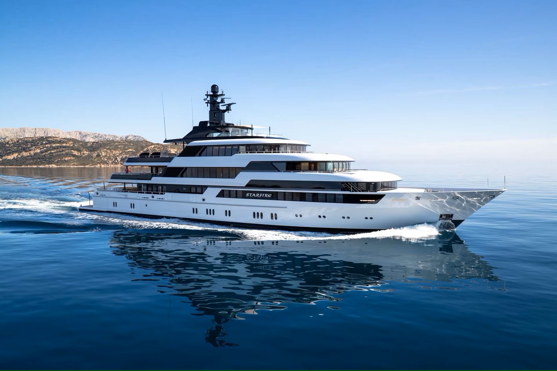 Superyacht STARFIRE is a magnificent 73.00m (239' 6") Lurssen motor yacht built in 2007 and refitted in 2025. Her impressive exterior decks have everything discerning guests could want, including a counter-current swimming pool and deluxe sunbeds, a choice of dining and lounge settings plus an outdoor cinema and wellness deck. Twelve guests can be accommodated in seven staterooms with additional cabins for the twenty crew members.