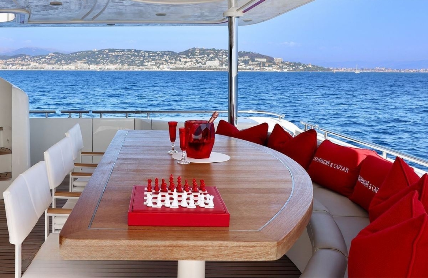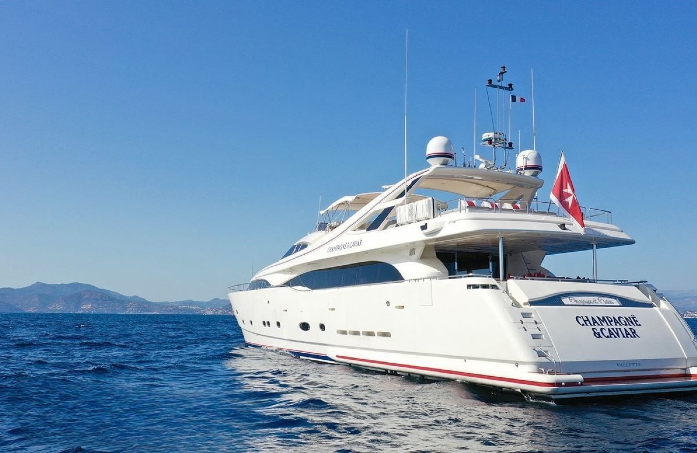 Luxury yacht CHAMPAGNE AND CAVIAR (Champagne Seas, Tacos of the Seas, Intimis, Rubbecan, Ruby) measures 34.14m (112') and was launched by the Italian shipyard Ferretti in 2004. Refitted in 2024, the yacht has modern classic, elegant interiors accommodating up to 12 charter guests over a five-cabin layout. A crew of seven is on board to ensure everyone has a fantastic time on their holiday.