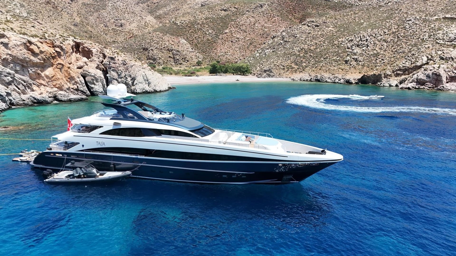 NOTABLE FEATURES OF TALIA: ~ 2025 full refit for refreshed interiors and systems ~ Main deck master suite with private office ~ Upper deck double cabin with panoramic views ~ Expansive sundeck jacuzzi and lounging ~ Excellent toy collection including electric surf and foil boards ~ Large beach club and swim platform ~ Stabilisers both at anchor and underway ~ Air-conditioning and Wi-Fi throughout ~ Professional crew of ten with outstanding feedback
