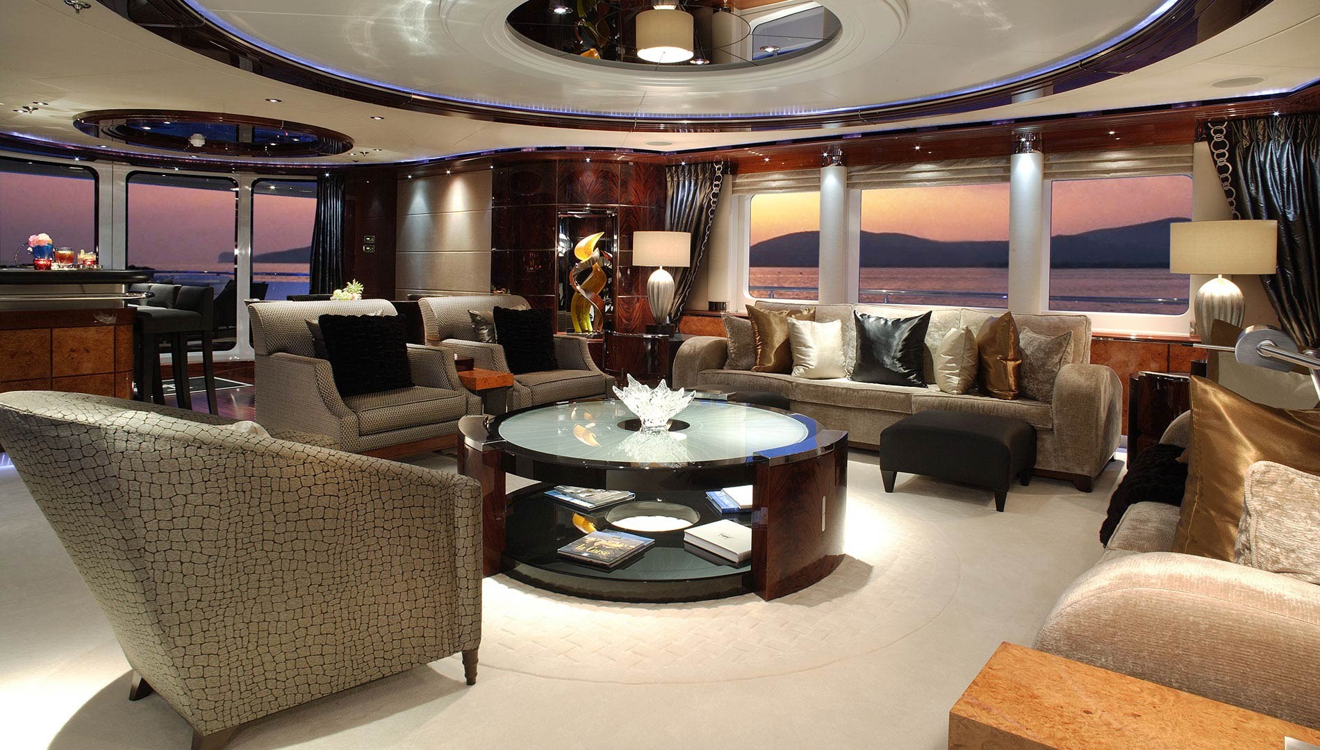 The Interior design team Howard and Horsfield have created a sleek, contemporary interior, which draws on early 20th century oriental styling. Effortless elegance pervades the living areas and accommodation resulting in a relaxed ambience throughout.