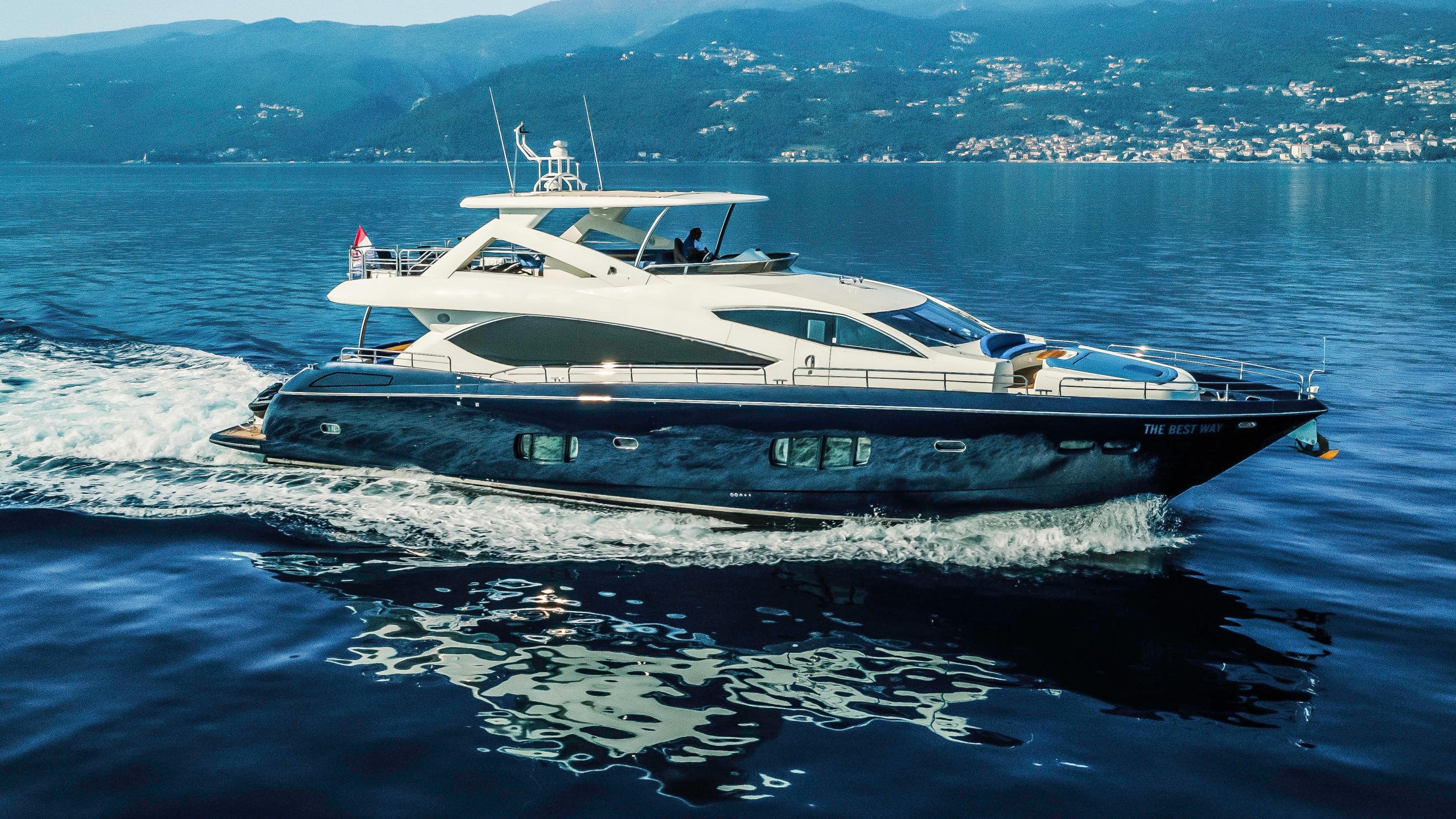 Luxury Motor yacht THE BEST WAY was launched in 2009 by the renowned Sunseeker shipyard, refitted in 2015 and measures 27m (88.7ft) in length. She offers accommodation for up to 8 guests in 4 cabins, each with private en-suite facilities.