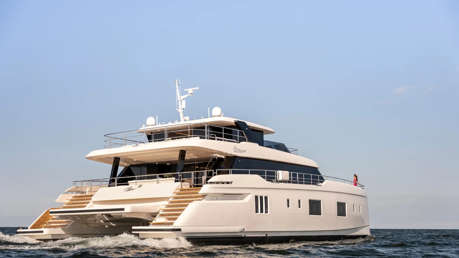 Motor yacht THEA VI is a 29.95 m (98'2") power catamaran launched by Polish shipyard Sunreef Yachts in 2024 who kept the naval architect, exterior and interior design inhouse. She can accommodate up to 12 guests with additional cabins for the three crew members.