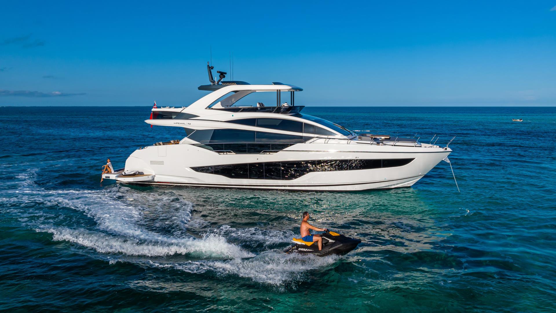 Luxury motor yacht TIMELESS is a sporty 23.00m (75' 6") vessel built by Pearl Yachts in 2025. This Maltese-flagged vessel features interior design by renowned designer Kelly Hoppen and naval architecture by Bill Dixon. With a beam of 5.75m (18' 10") and a draft of 2.80m (9' 2"), this GRP displacement yacht offers excellent stability and comfort. Powered by twin MAN V12 1550 HP engines, she cruises at 20 knots with an impressive maximum speed of 32 knots. TIMELESS accommodates 8 guests in 4 cabins and has a crew of 2.