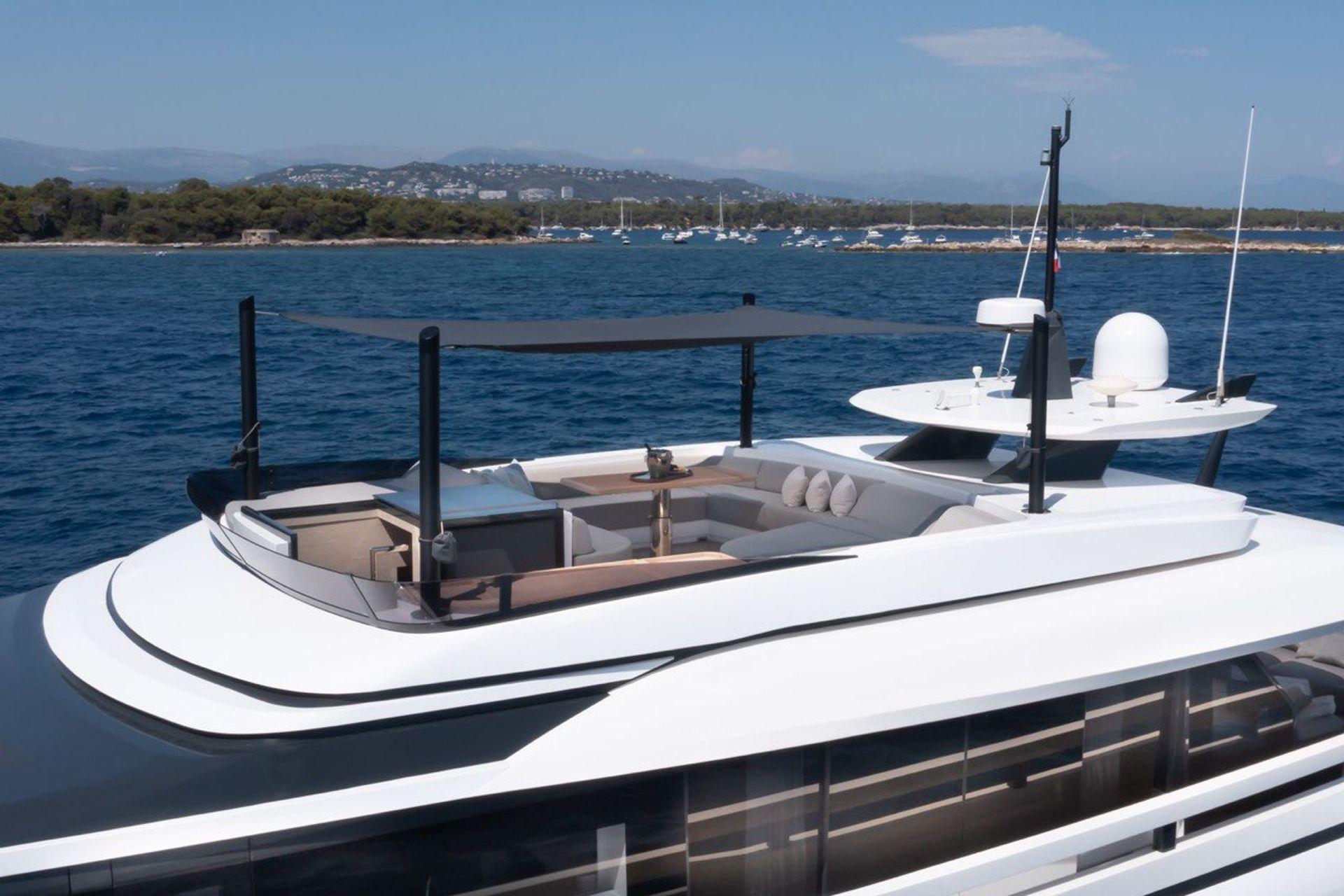 NOTABLE FEATURES OF UILIA: ~Exclusive Extra 93 model with sleek Francesco Guida design ~Hot Lab interior with floor to ceiling windows ~Full beam master suite forward on main deck ~Expansive sundeck with dual lounging zones and wet bar ~Multiple open air living areas across three deck levels ~Seakeeper gyrostabilisers for smooth comfort underway