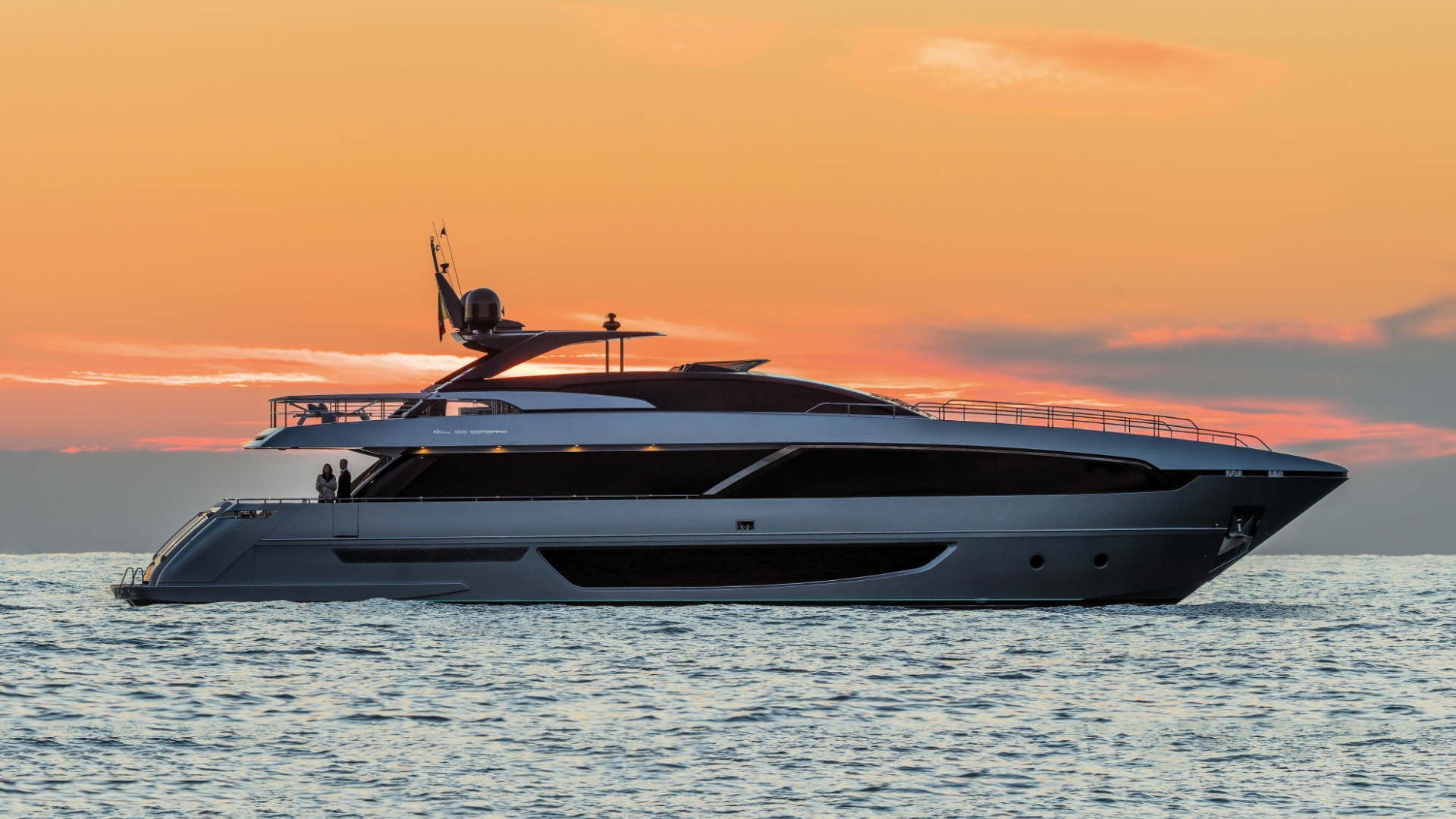 Motor yacht GOLD BLACK (ex Unknown) is a 29.90m (98' 1") Riva 100' Corsaro luxury vessel built by the iconic Italian shipyard RIVA in 2018, offering modern and luxurious amenities. With interiors by the Officina Italiana Design, this spacious vessel accommodates up to ten guests over a five-cabin layout, with a crew of 5 on board.
