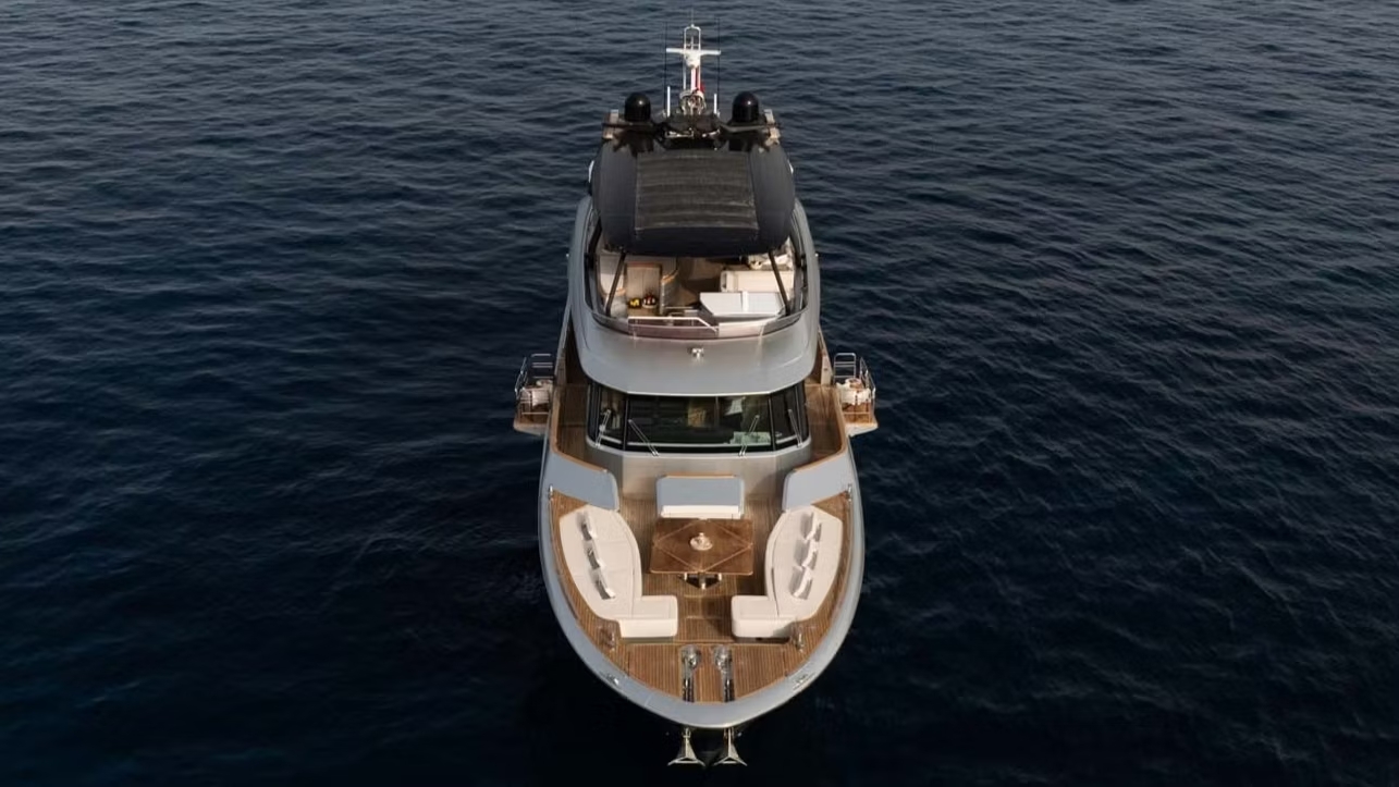 Luxury motor yacht VENUS is an elegant 26.80-meter (87'11") flybridge yacht built by Monte Carlo Yachts in 2013 and comprehensively refitted in 2023. This sophisticated vessel accommodates up to 8 guests across 4 well-appointed cabins.