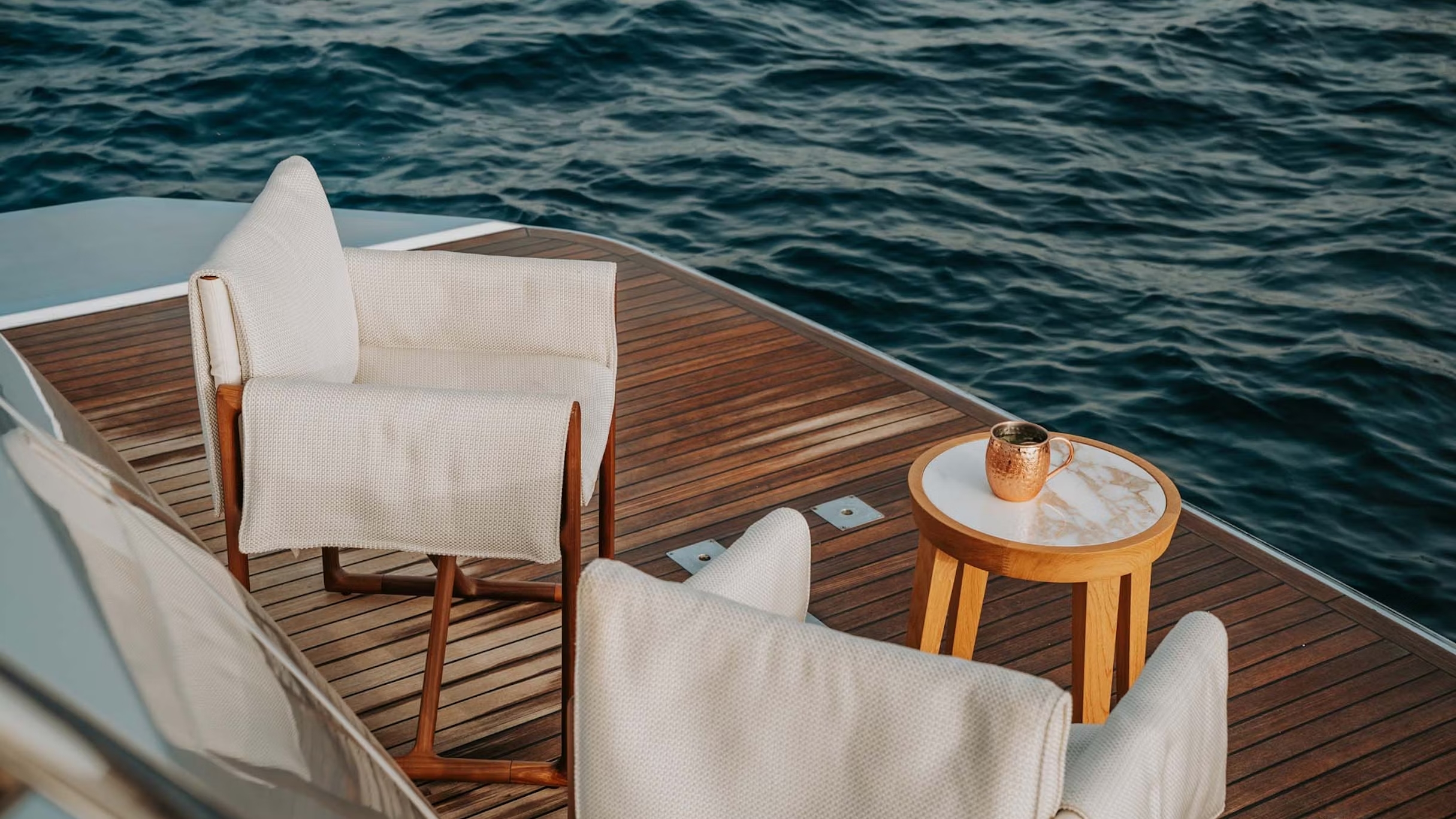 TOYS: ~ Williams Tender Sport Jet 395 ~ Two paddle boards ~ Inflatable banana towable ~ Snorkeling gear ~ Yoga mats ///AUDIO VISUAL EQUIPMENT AND DECK FACILITIES: ~ Portable DJ console ~ Fusion audio system ~ Outdoor TV on sundeck ~ TV in saloon ~ Bluetooth connectivity ~ Bang & Olufsen cabin speakers /// COMMUNICATIONS: ~ PEP Wave system ~ WiFi throughout vessel
