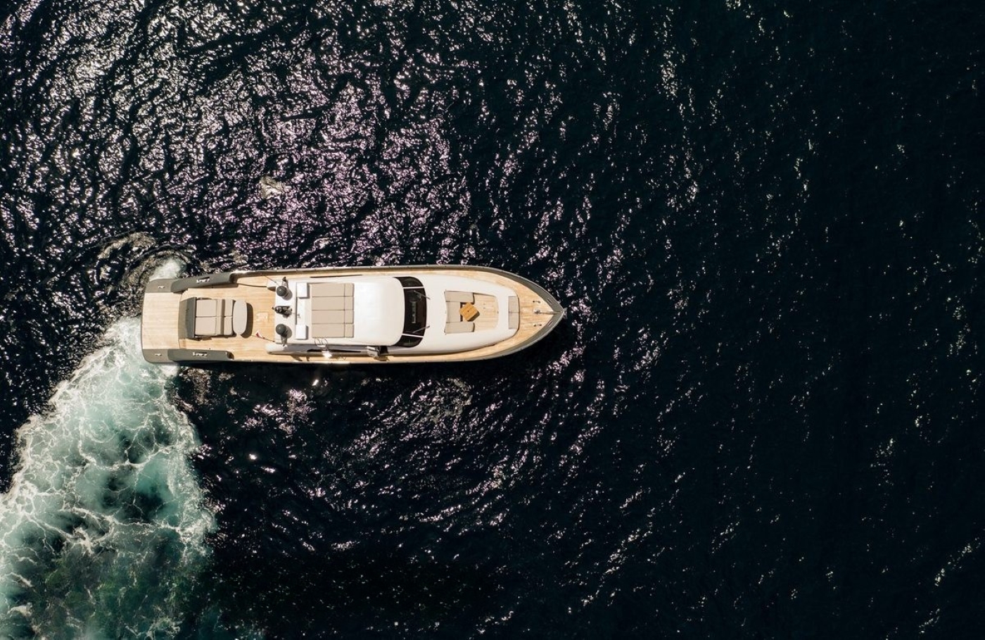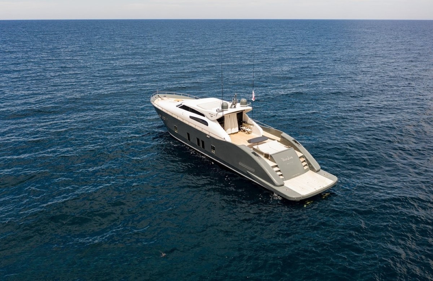 Luxury yacht VEVEKOS from Tecnomar was constructed with a GRP hull and superstructure measuring a total length of 23.43m/76.10ft. The accommodation sleeps a total of six guests over three en-suite cabins, with an expert crew of three to take care of every little detail.