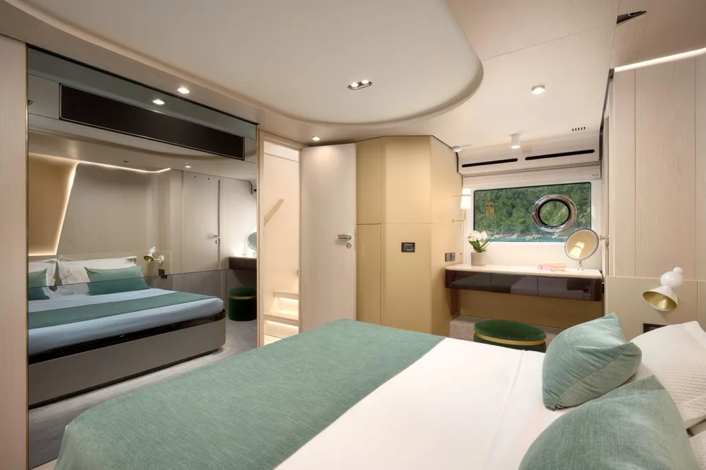 Access to the lower deck accommodation is from the main salon.
