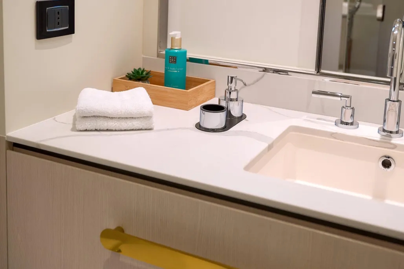 The full beam master is amidships on the lower deck, with the added advantage of lounge and vanity areas, plus large walk-in wardrobe and luxury ensuite. Two further doubles and one twin are all ensuite and forward on the lower deck. All the cabins are beautifully designed with neutral décor and thoughtful touches. Crew accommodation is in the bow.