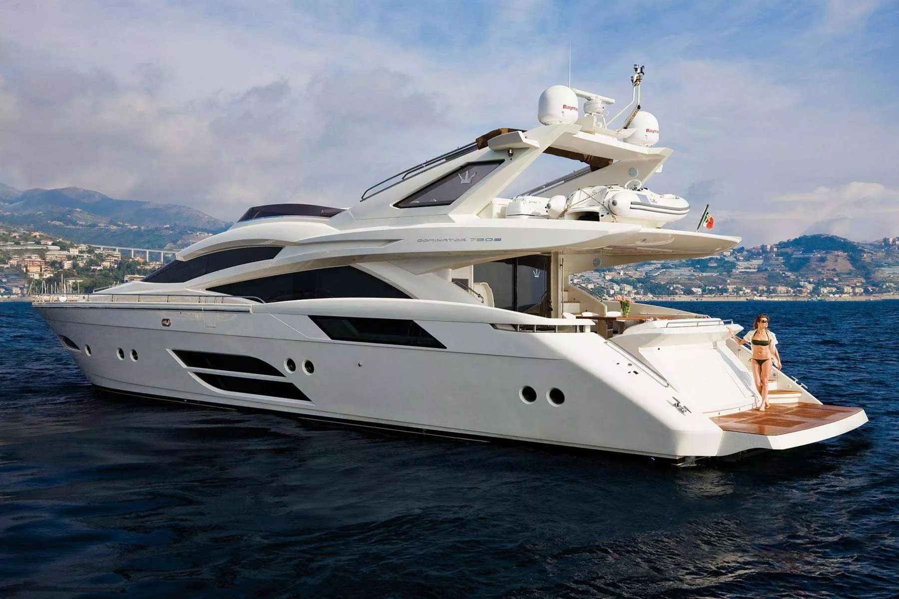 Built in 2012 and refitted in 2024, 23.1m (75’9”) luxury yacht WHY NOT is a Dominator flybridge yacht combining cutting-edge technology seamlessly with delightful interiors and luxurious amenities. Guest can look forward to an exceptional charter experience with accommodation for six in a three-cabin layout. Four crew members are on board throughout.